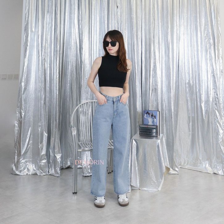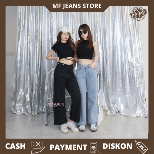 Celana Panjang Jeans Kulot Panjang Wanita Loose Fit High Waist Cewek Bahan Denim Korean X38 Celana Panjang Korean Style