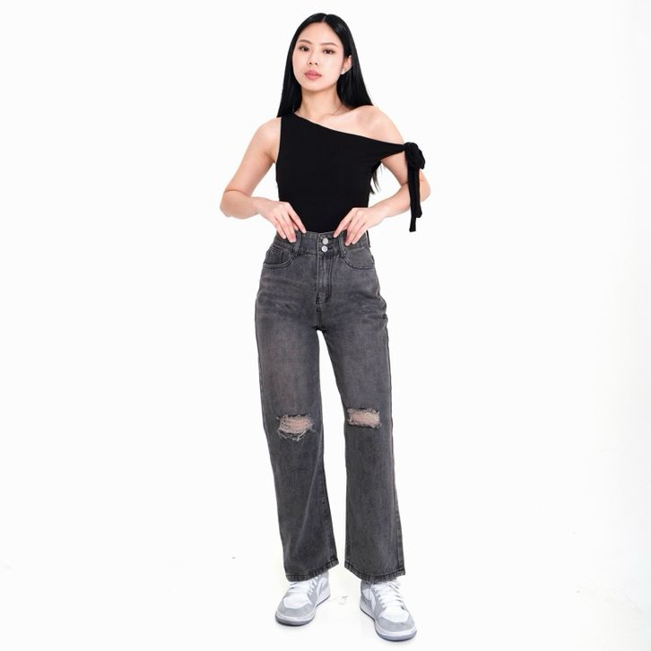142 Jeans Celana Panjang Highwaist Wanita Jeans Premium Quality Celana Wanita Korean Style Polos Ripped Celana Baggy