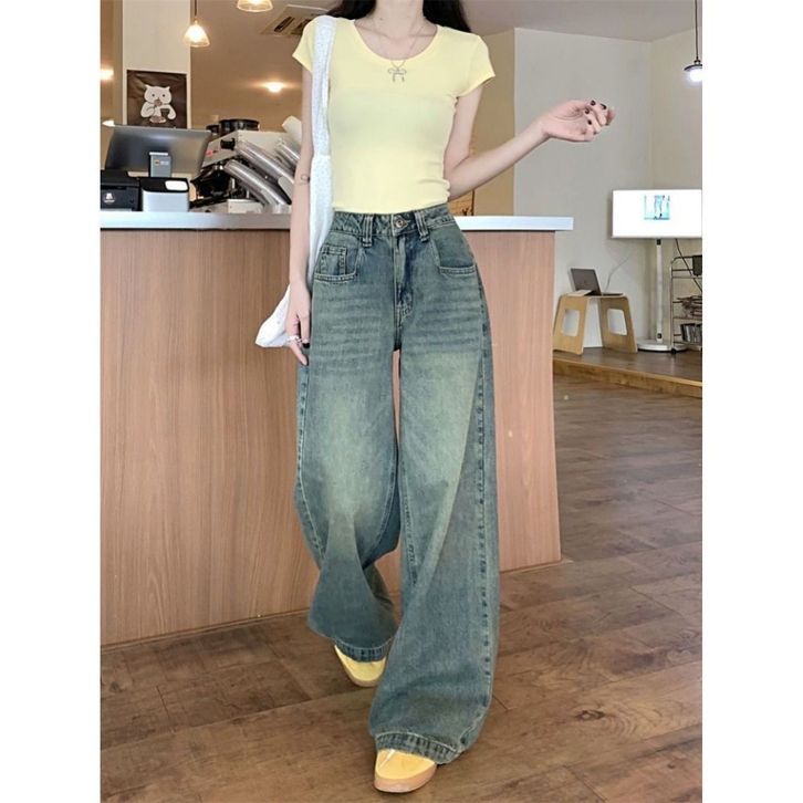 [Star] Celana Jeans Wanita Size S-XXL Highwaist JomelinJeans Retro Biru Loose Korean Style Import