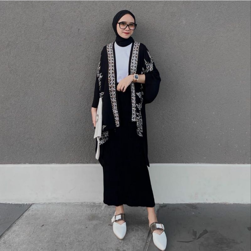 Outer Batik Kimono Cardigan Batik Wanita Modern Motif Etniq Outfit Kondangan Simpel