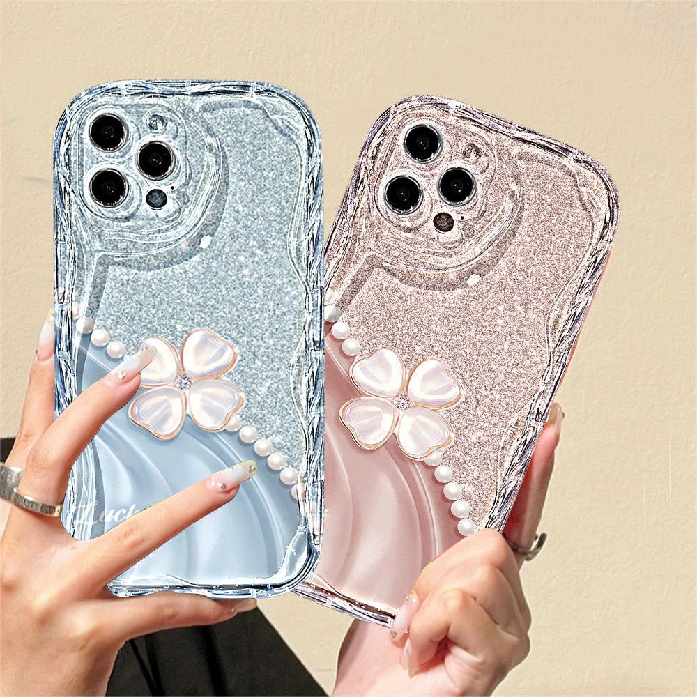 Casing Hp Softcase Silikon Model Blue Glitter Clover Untuk Hp Infinix Hot 50 50i 40 Pro 40i 30i 20S Smart 9 8 Pro 7 6 5