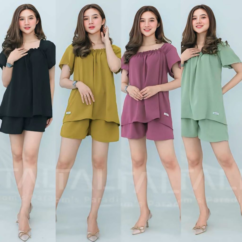 DISKON PAKET HEMAT 100 RIBU DAPAT 4 SETELAN FUJI JUMBO LD 120 ONE SET BAJU WANITA CELANA PENDEK