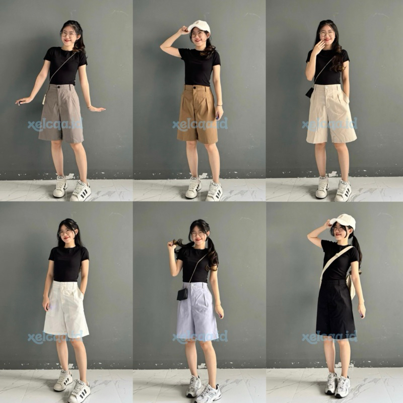 Mila Daily Pants | Celana Highwaist Jorts | Drill | Casual | Petite Size | Xelcaa
