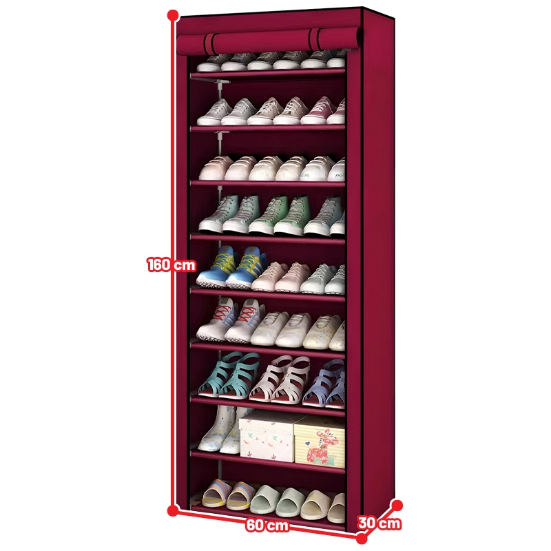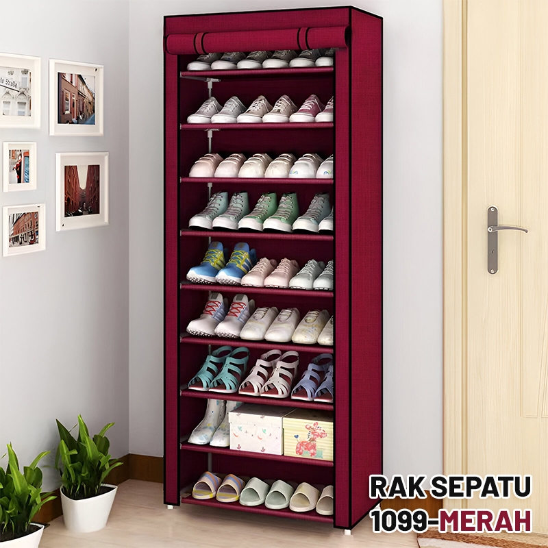 AIHOME LIVING-RAK SEPATU KAIN 10 SUSUN 9 RANGKA TIPE 1099 RED RAK SENDAL PORTABLE LEMARI SEPATU