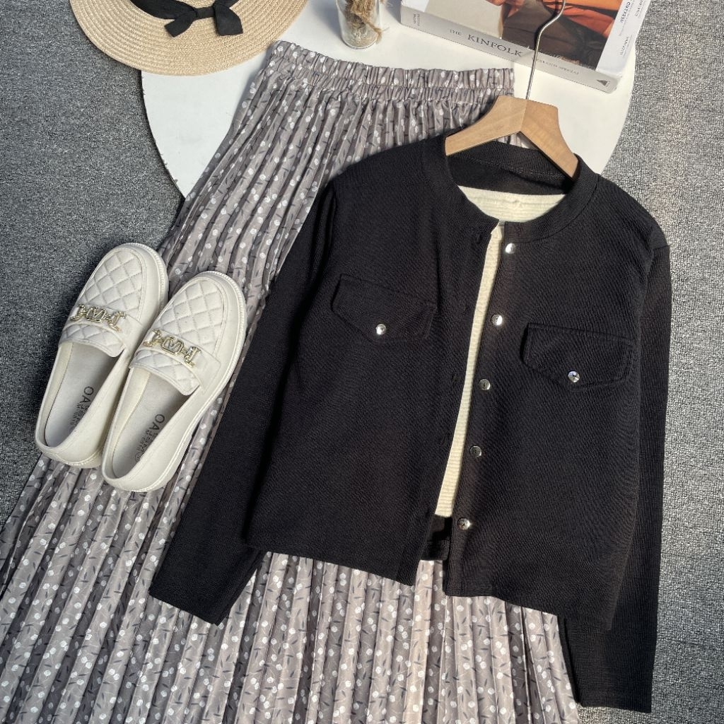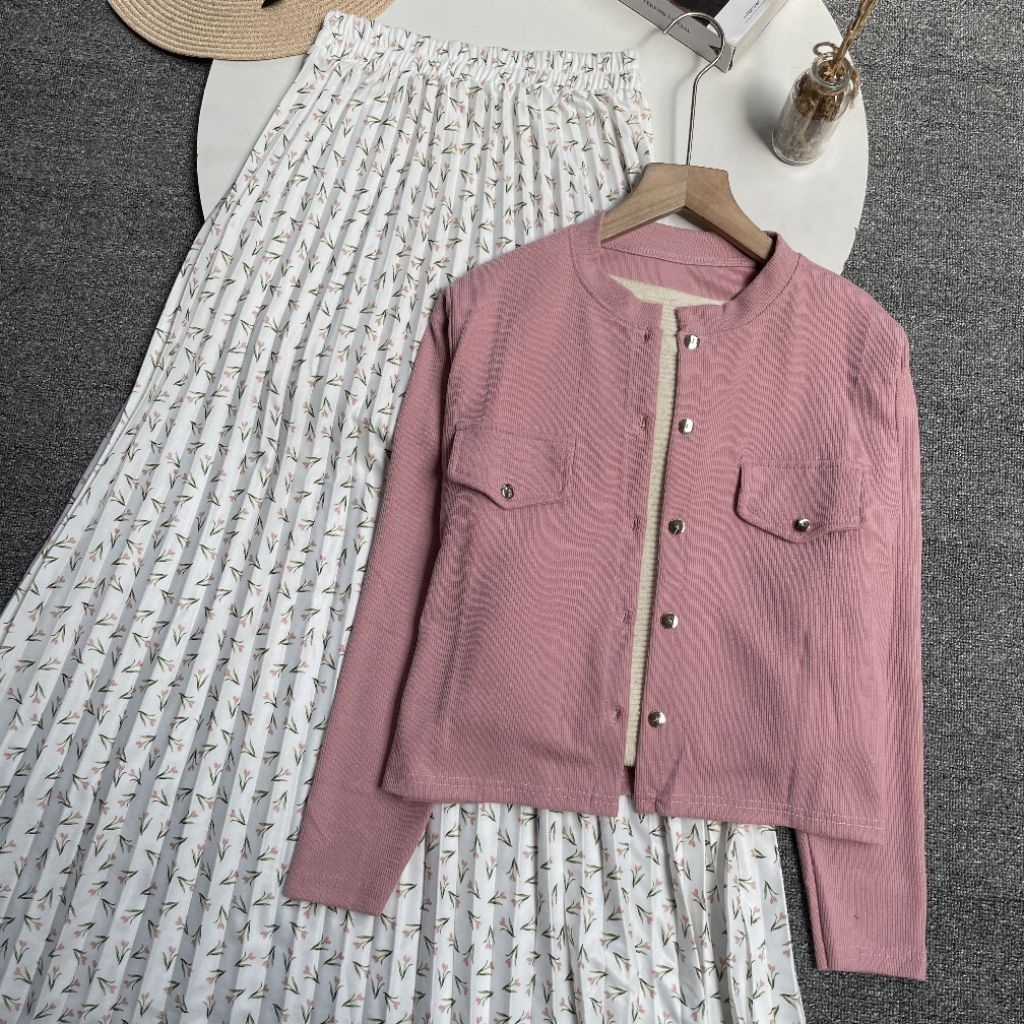 Vienetta Id - ONESET SETELAN WANITA KEKINIAN Cardi Pocket Knit Rok Plisket Hyget Premium ONESET WANITA KEKINIAN 2025 Oot