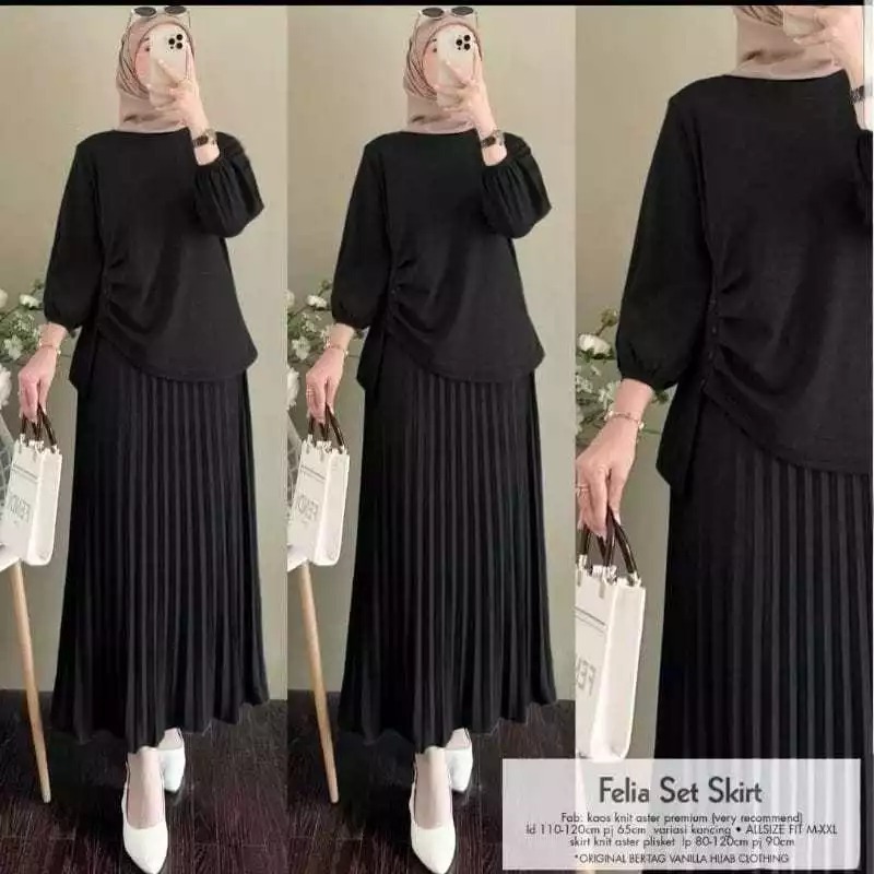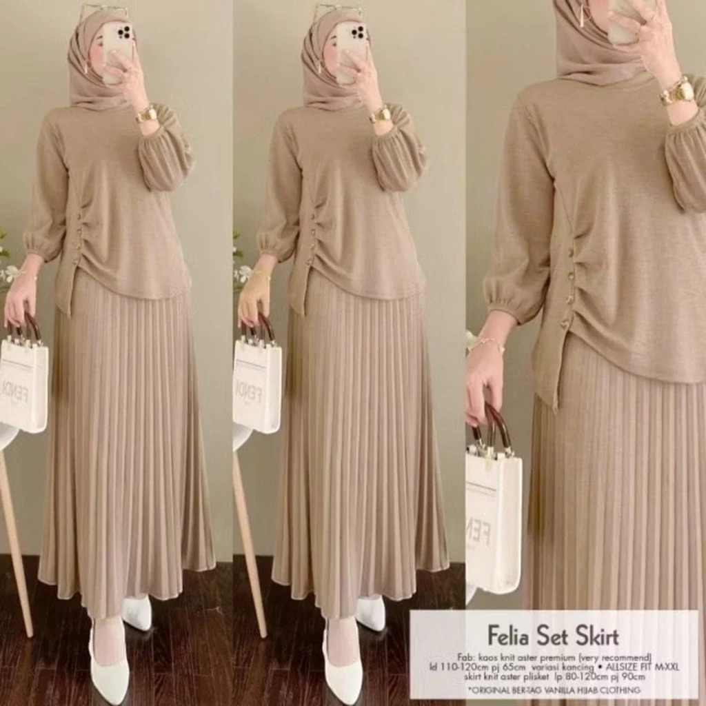 FELIA SET ROK PLISKET RIB KNIT FIT TO XL // ONE SET PLISKETA // SET ROK PLISKET // SETELAN ROK POLOS WANITA // OOTD SETE