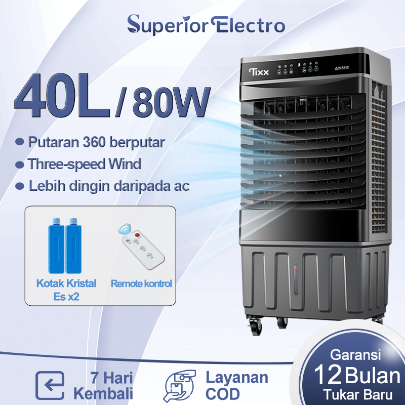 SUPERIOR AIR COOLER TANGKI BESAR 40L AC PORTABLE PENDINGIN RUANGAN 3 KECEPATAN & REMOTE