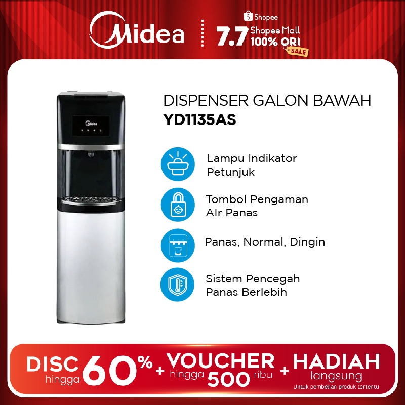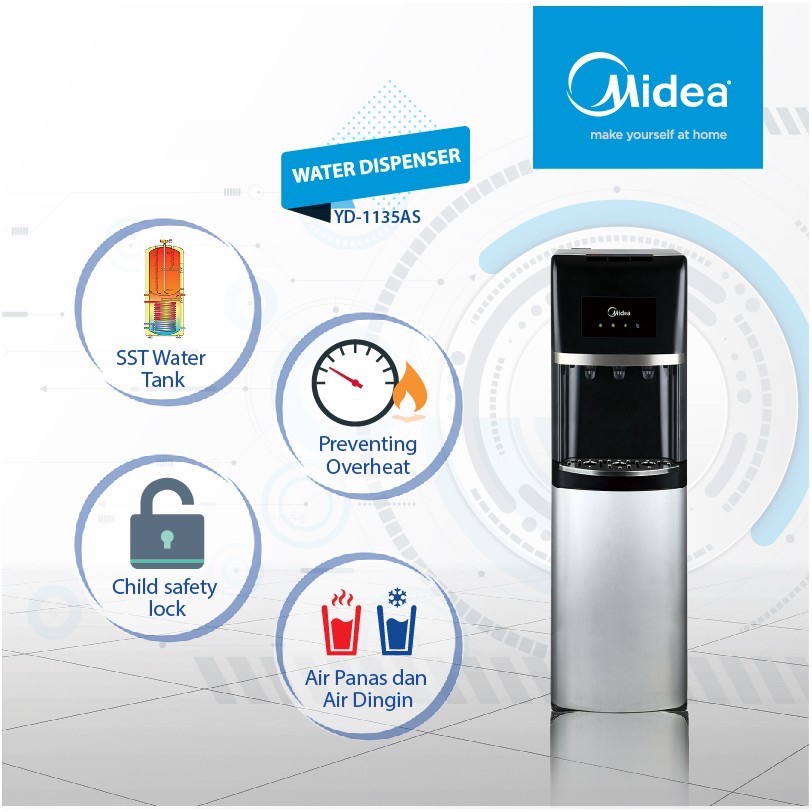 MIDEA DISPENSER GALON BAWAH HEMAT DAYA - YD1135AS BOTTOM LOADING STAINLESS STEEL