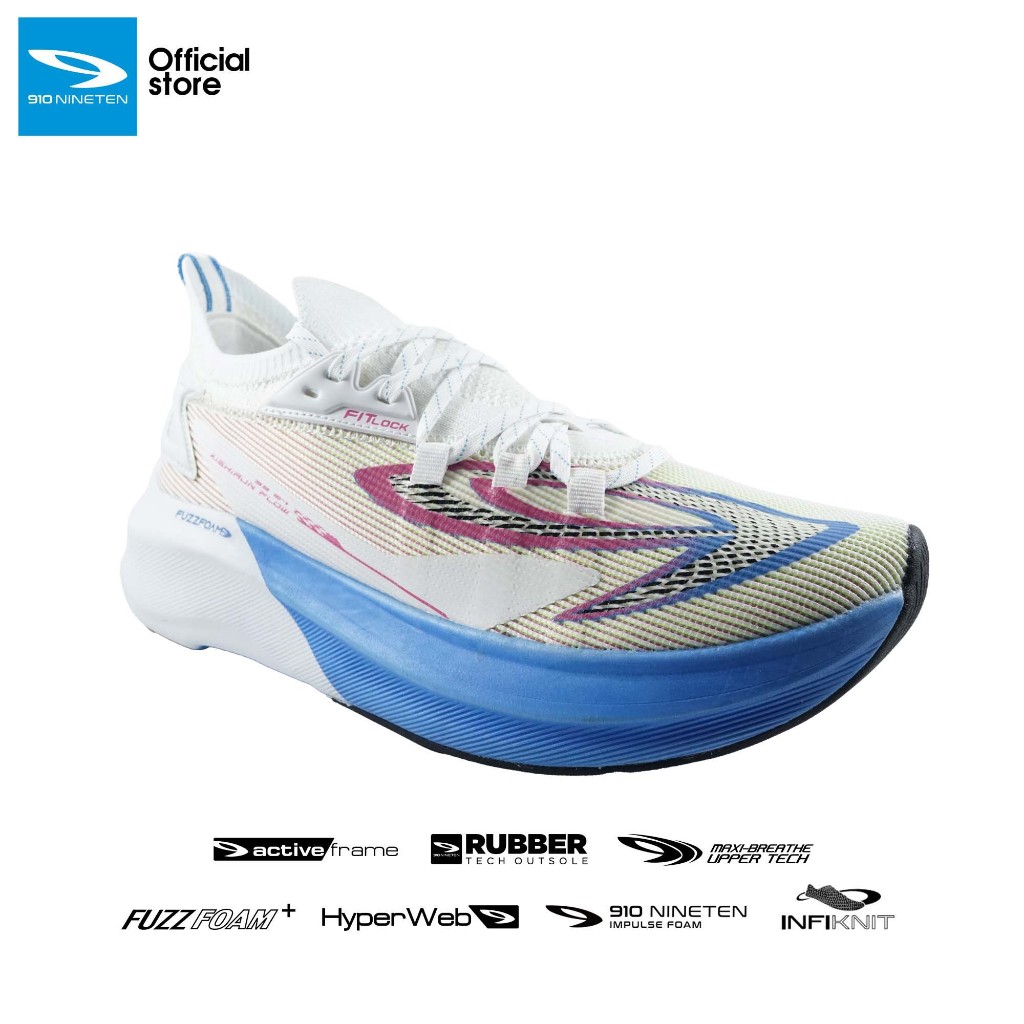 910 NINETEN KISHI RUN FLOW SEPATU LARI - PUTIH/BIRU/MERAH-MUDA