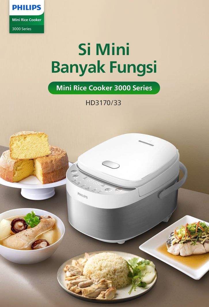 Philips Mini Digital Rice Cooker / Magicom HD3170/33 0.85 L, Penanak Nasi, Inner Pot Anti Lengket - White