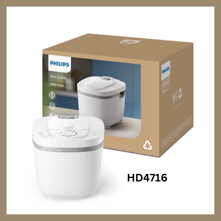 Philips Rice Cooker 1.8 L - 3000 Digial Series HD4716/30 - Putih - Anti lengket - FreshDefense Technology, digital