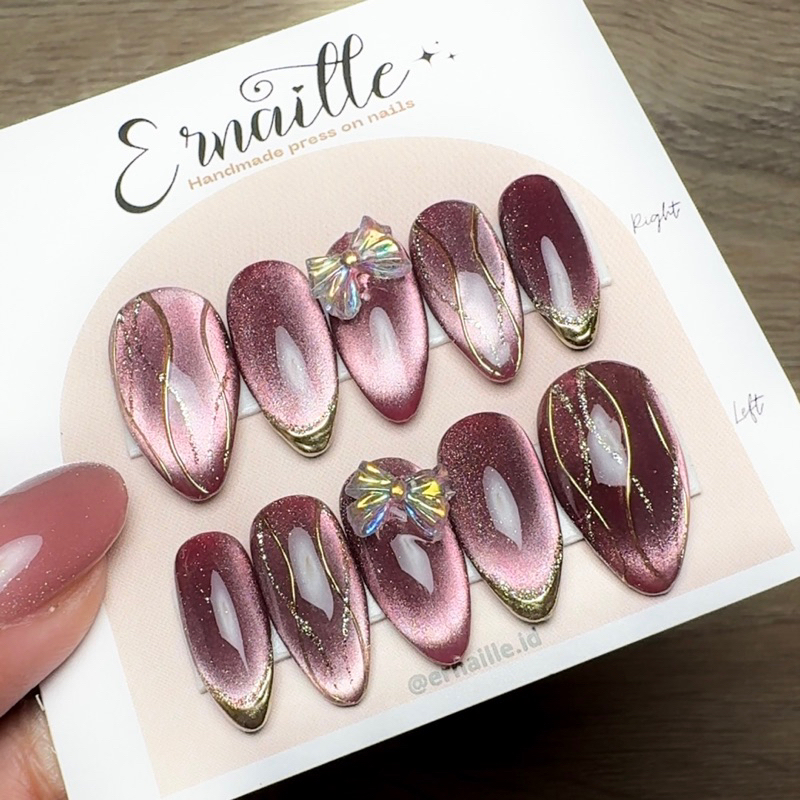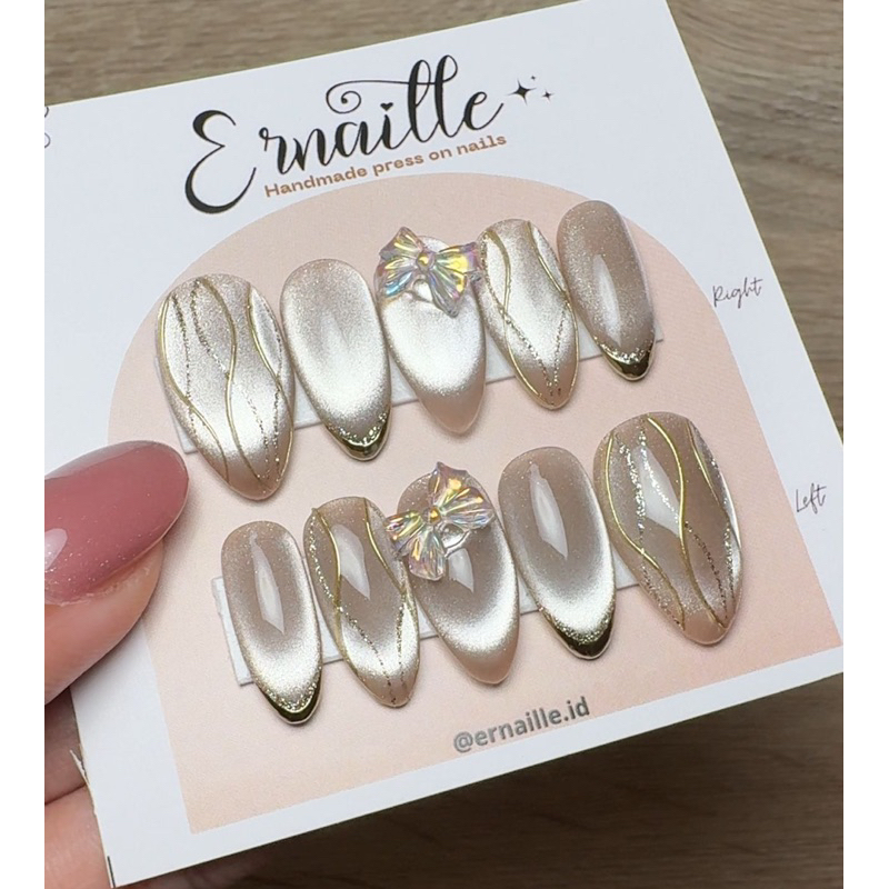 SAND BEIGE CAT EYE PITA | PRESS ON NAILS | NAIL ART GOPEK CENG