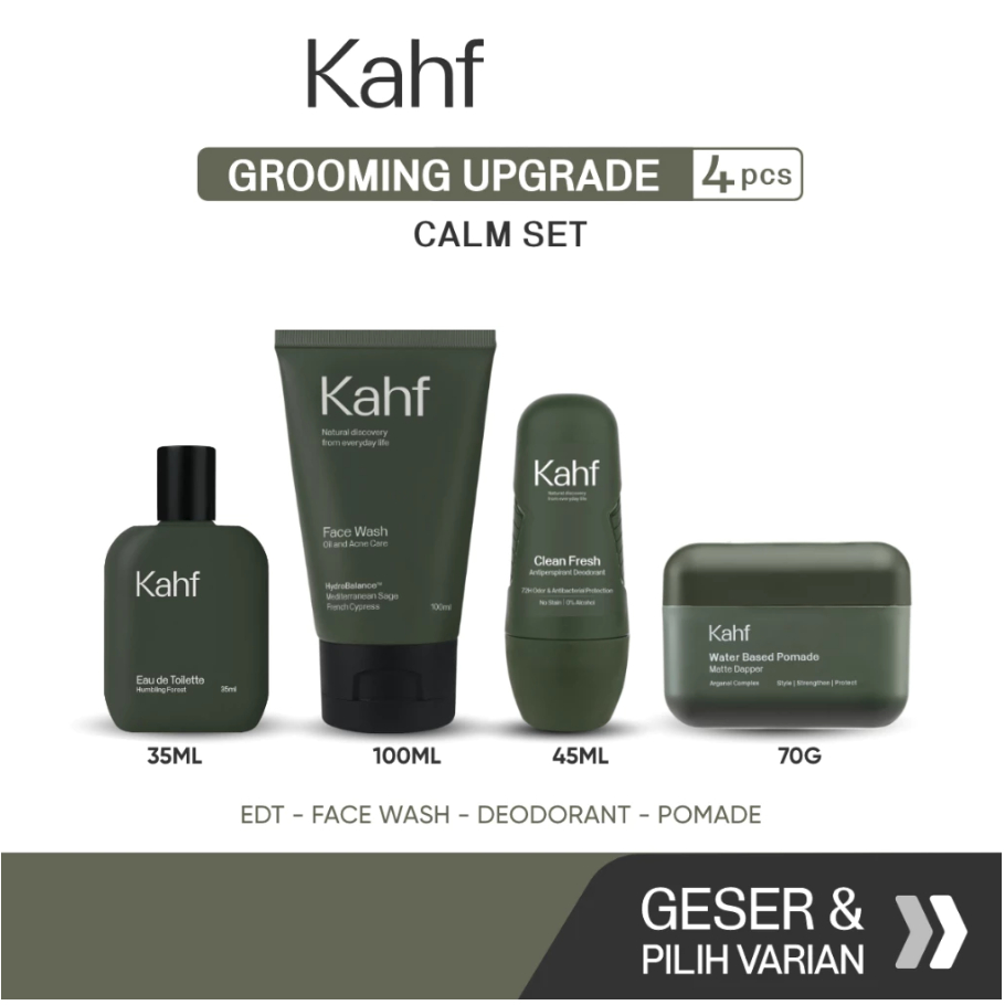KAHF PERSONAL CARE KIT ISI 4PCS - PAKET PERAWATAN PRIA (BODY WASH COOLING, DEODORANT, SUNSCREEN, FACE WASH 100ML) CEK DE