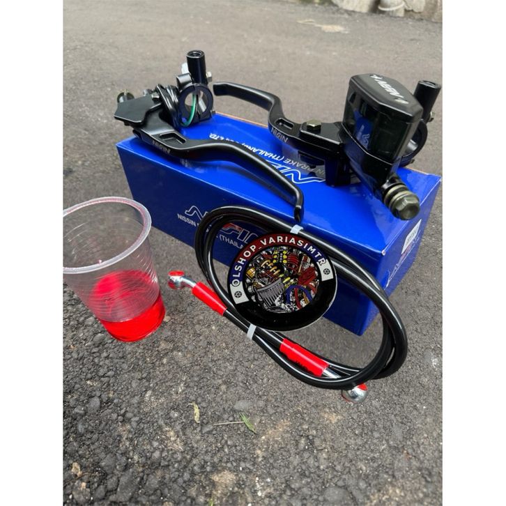 Paketan Master Rem NISSIN Oval Set Selang Rem Hitam 95cm Free Minyak Rem 50ml