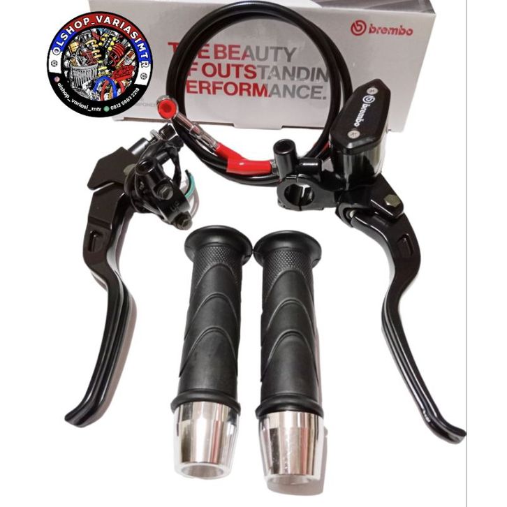 sepasang master rem tabung oval+ selang rem serat carbon 90cm+ handgrip honda plus jalu pcx universal semua motor