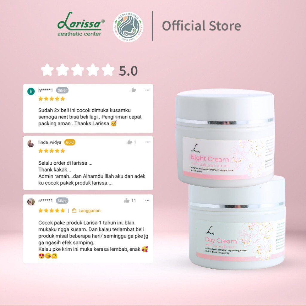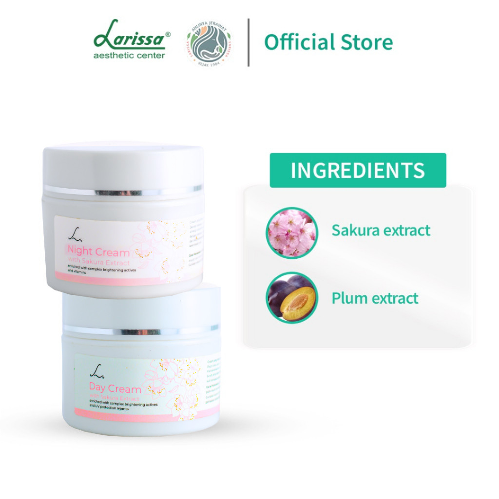 LARISSA CREAM PAGI - MALAM SAKURA BRIGHTENING SERIES KRIM PENCEARAH DENGAN KANDUNGAN AMAN DAN TERJAMIN
