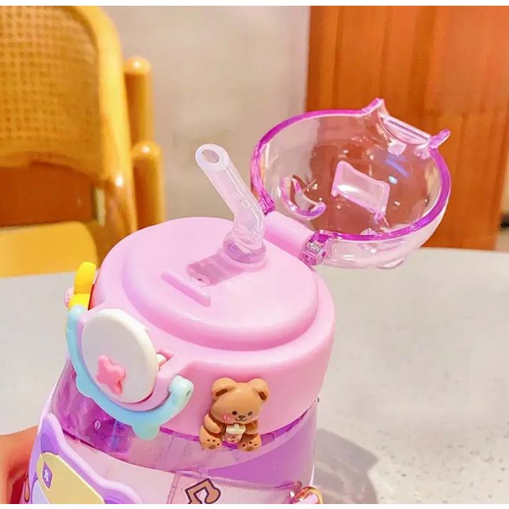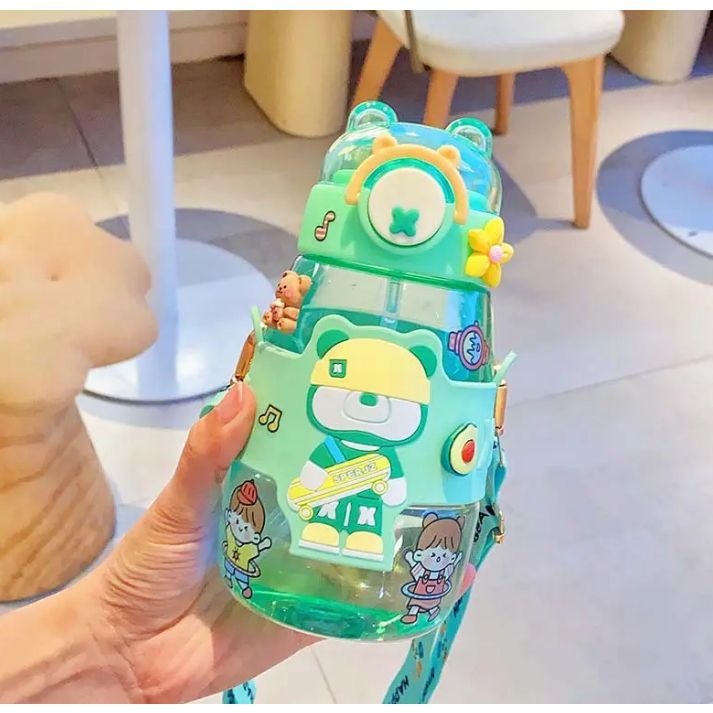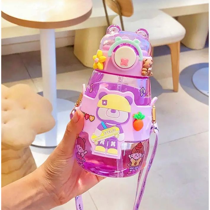 Botol Minum Anak Sekolah Lucu Karakter Motif Kartun Unik Botol Tempat Minum Anak 600ml Free Sedotan Dengan Tali 741