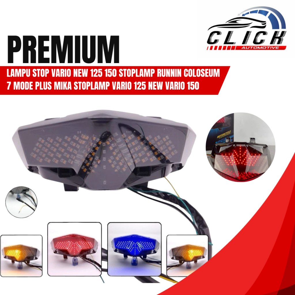 LAMPU STOP REM BELAKANG VARIO 150 LED RUNNING COLOSEUM 7 MODE PLUS MIKA STOPLAMP VARIO 125 NEW VARIO 150