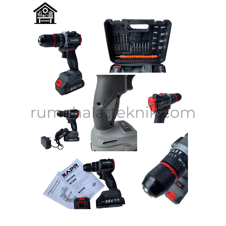 APR AP34+ 88V Mesin Bor Cordless/Bor Baterai/ Bor Listrik/Beton Besi Kayu Baterai Tangan Cordless Drill Battery impact