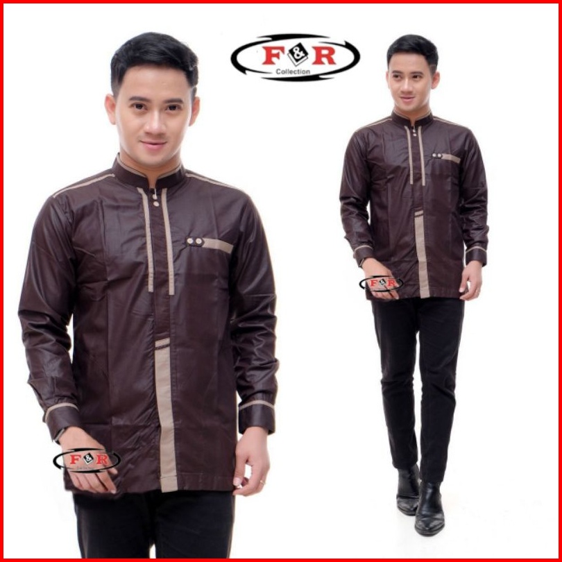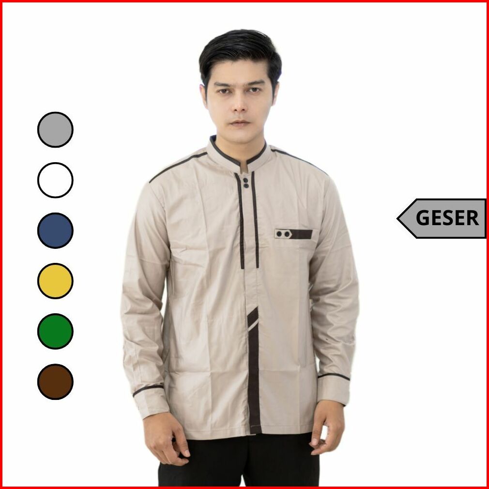 Baju Koko Pria Dewasa Lengan Panjang Motif Khatulistiwa Warna Crem