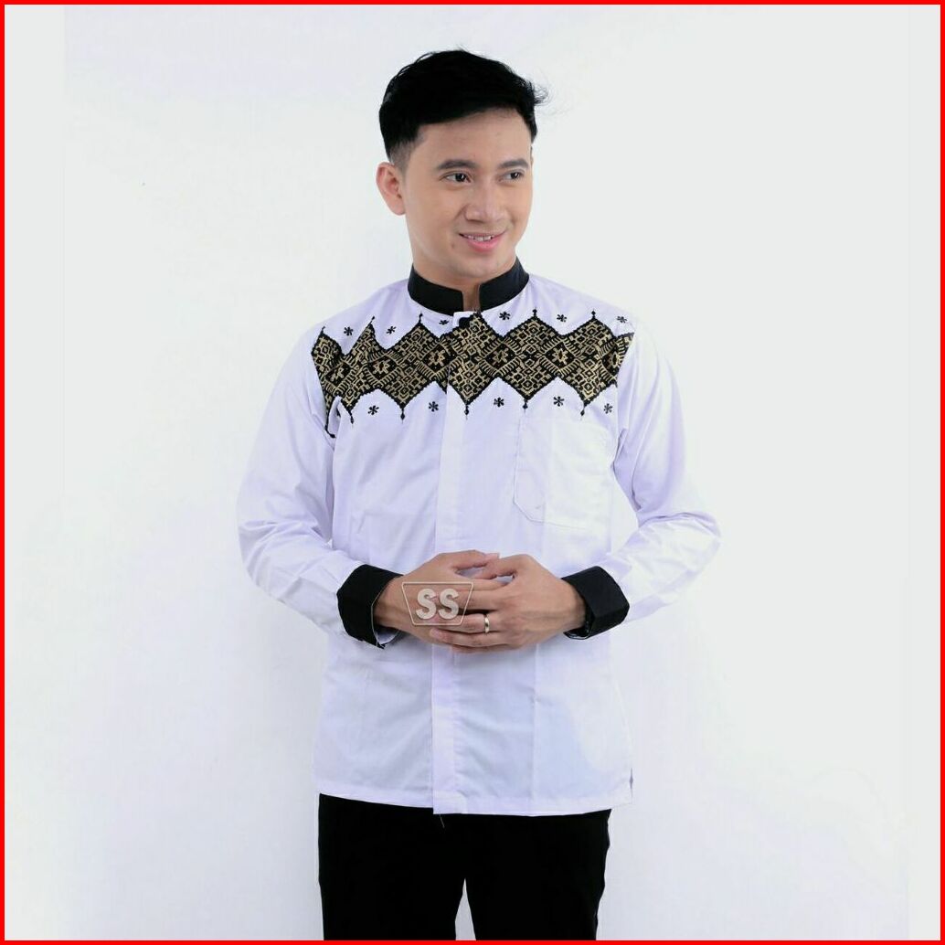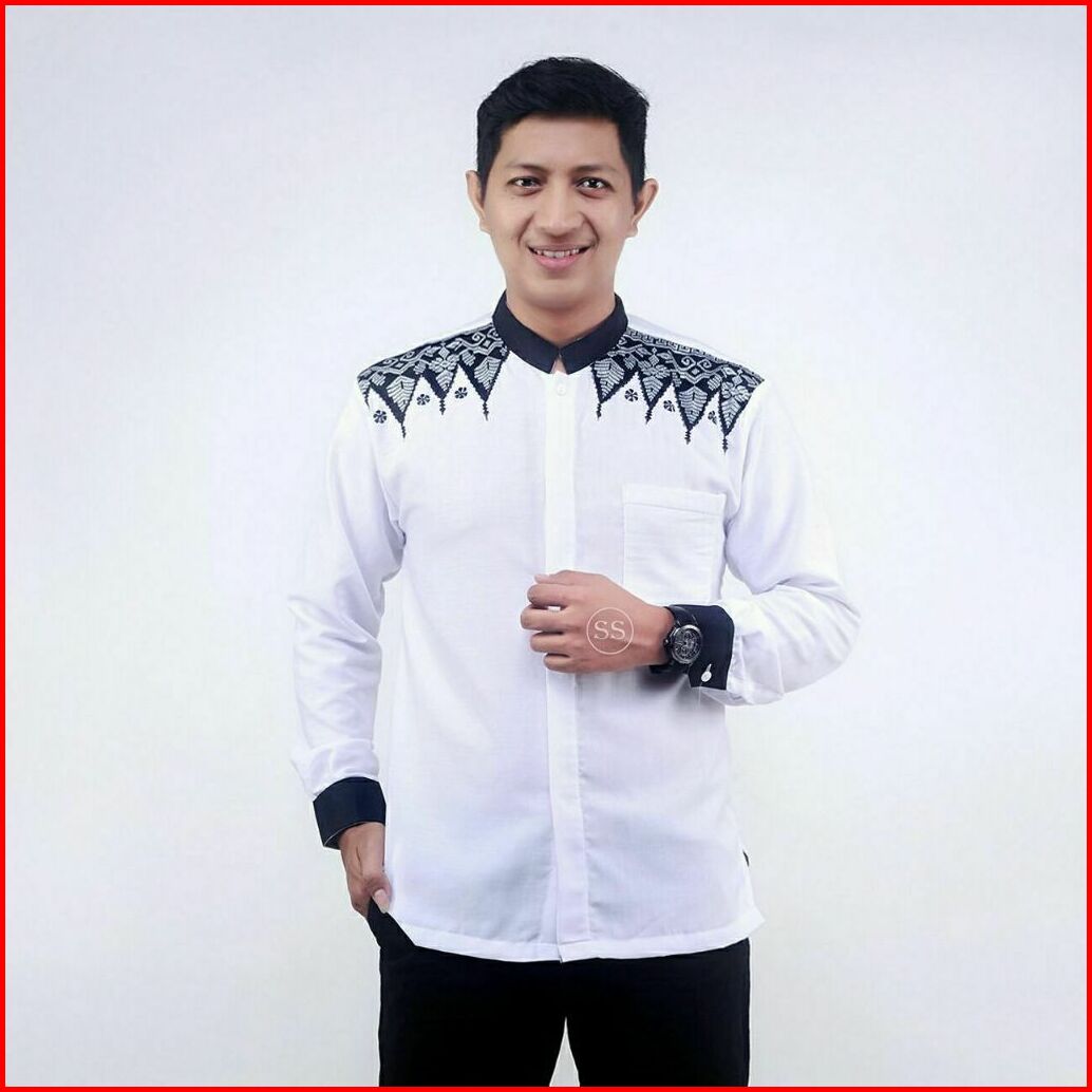 Baju Koko Lengan Panjang Putih Bordir Lancarjayabatik