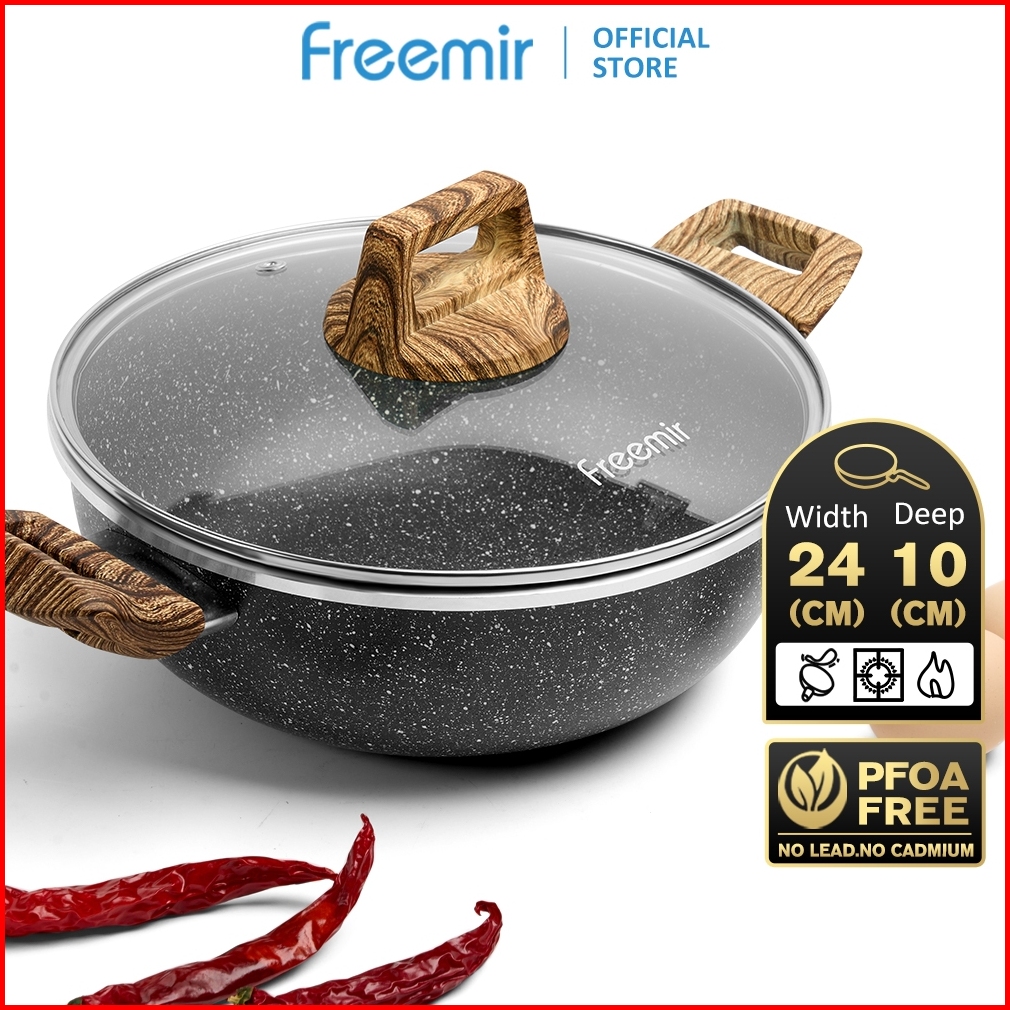New Launch Freemir Deep Wood Series Anti Lengket Panci Hitam 24cm Kedalaman 10cm Anti Lengket