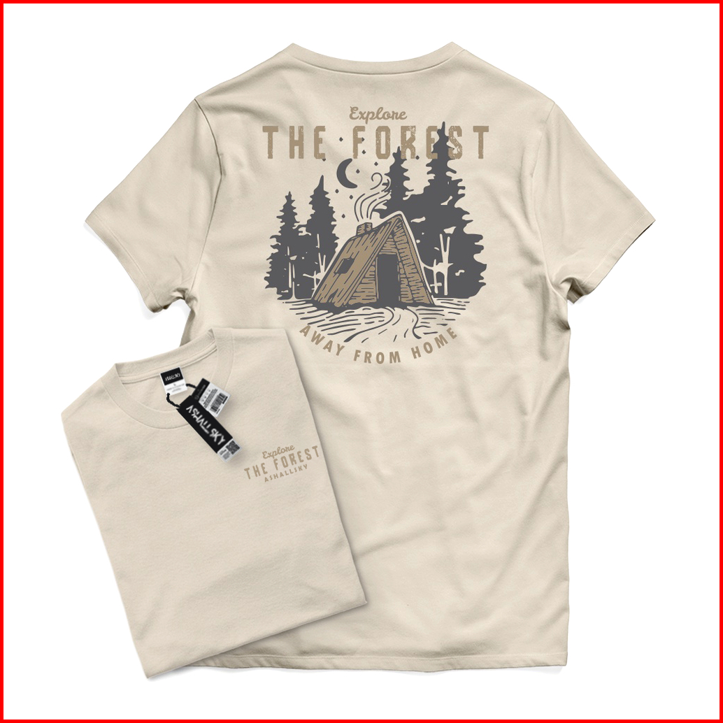 Ashall.sky Baju Kaos Distro Motif Forest Cream Dewasa Oblong Lengan Pendek Katun Combet 30s