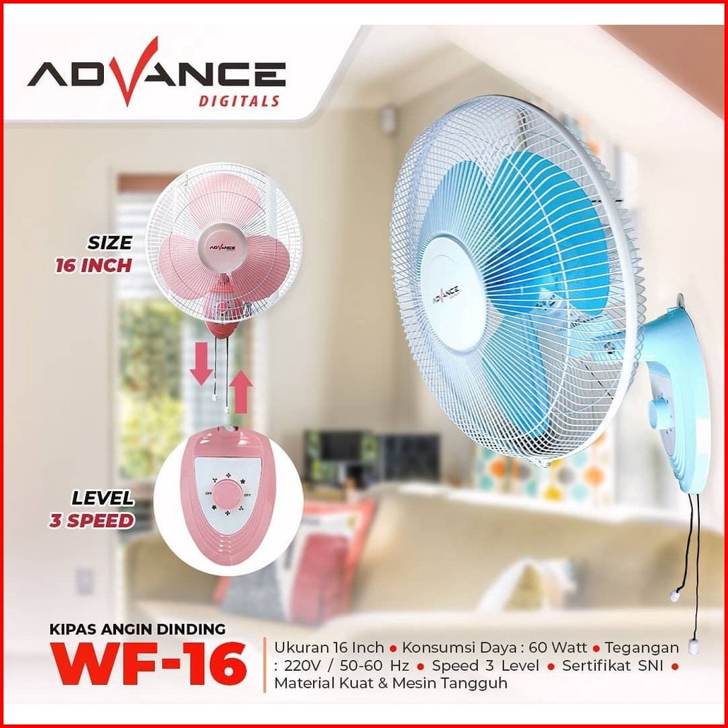 Kipas Angin Dinding Advance Wf-16 Wf16 Kipas Dinding Wall Fan 16inch Wall Fan 16inch Kipas Angin Dinding 16 Inch Kipas G