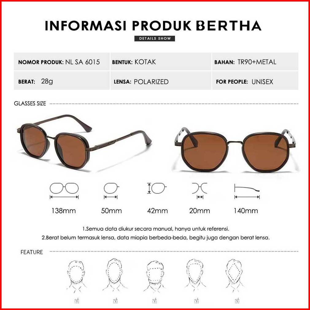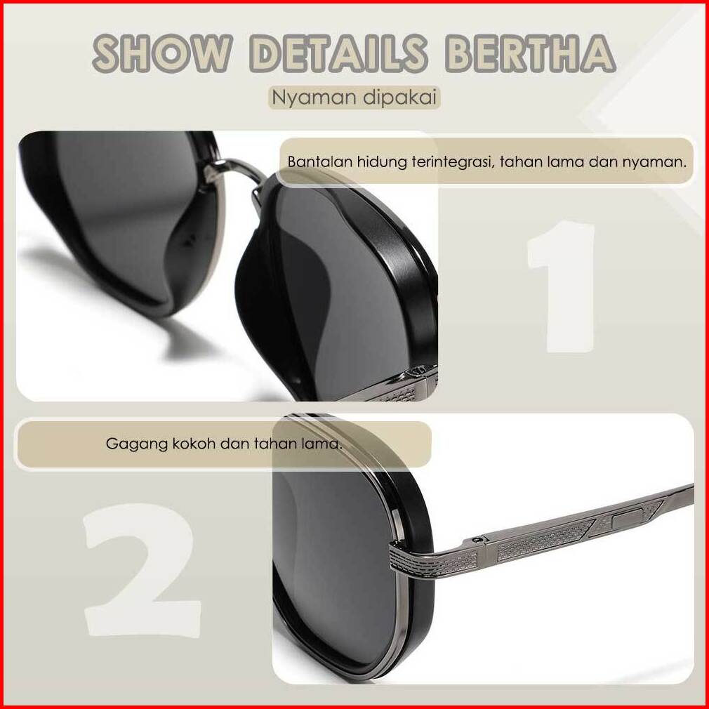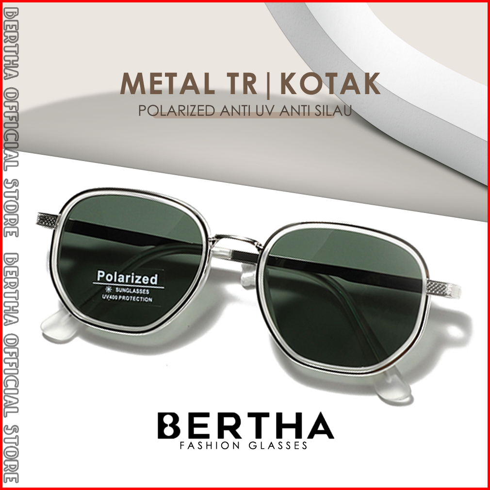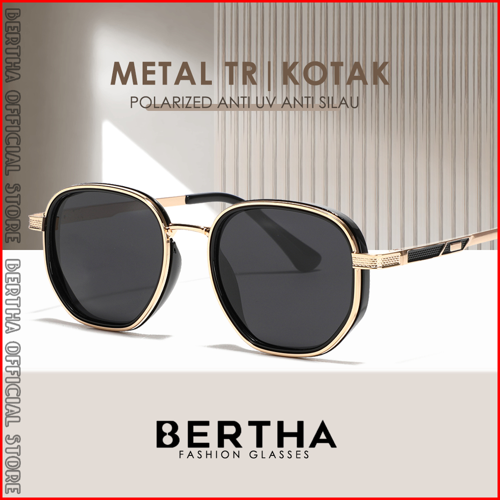 Bertha Kacamata Sunglasses Polarized Style Kotak Bahan Tr90 Metal Kokoh Fashion Pria Dan Wanita Terbaru 6015