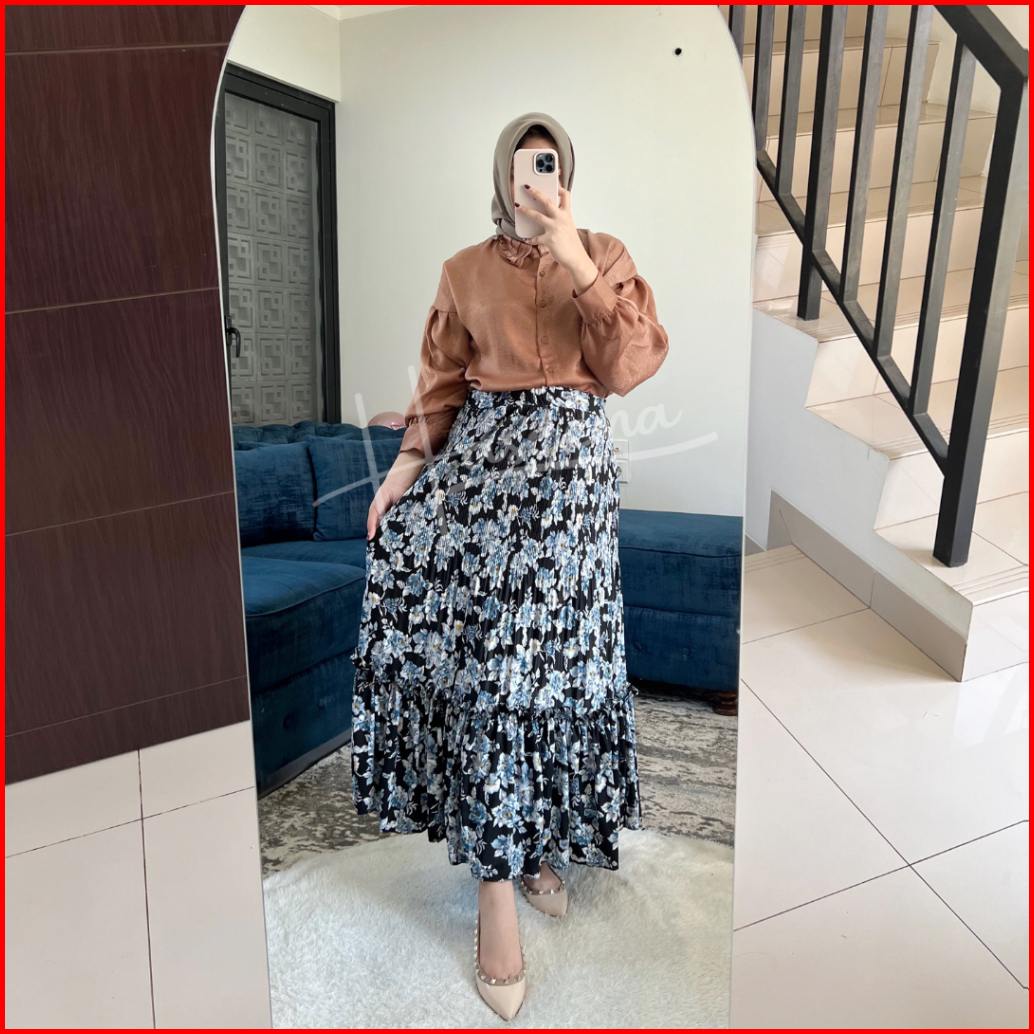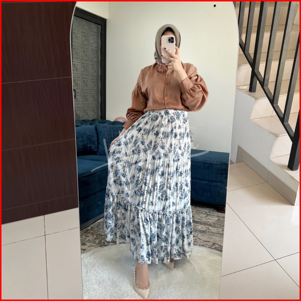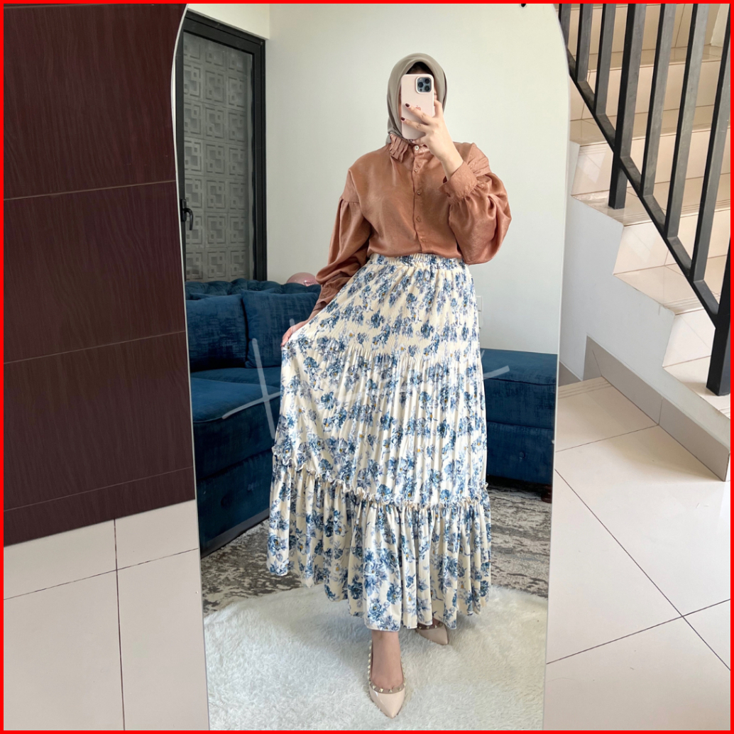 Haseena Rok Plisket Mietaa Rempel Susun Motif Bunga Peony Rok Wanita Skirt Ruffle Anti Nerawang Motif Style Korea