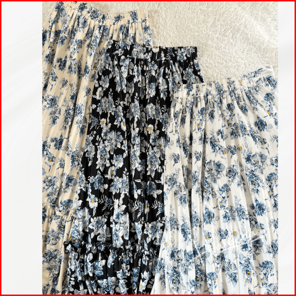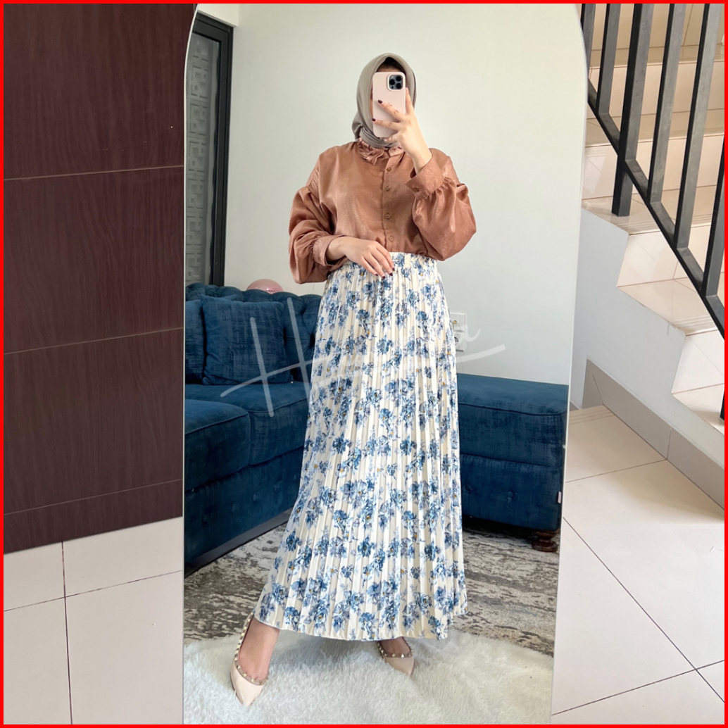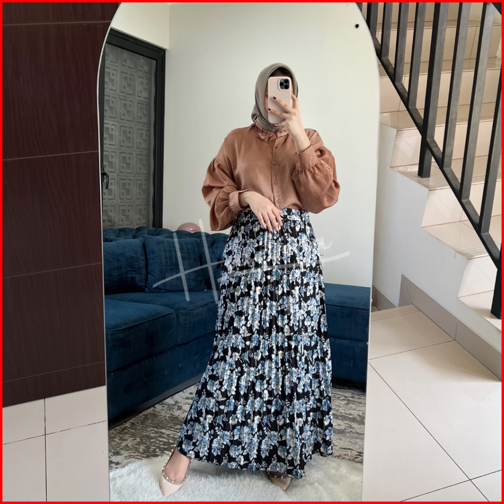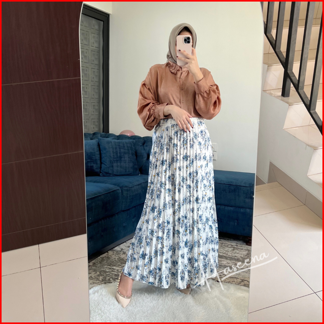 Haseena Rok Plisket Mietaa Rempel Susun Motif Bunga Peony Rok Wanita Skirt Ruffle Anti Nerawang Motif Style Korea