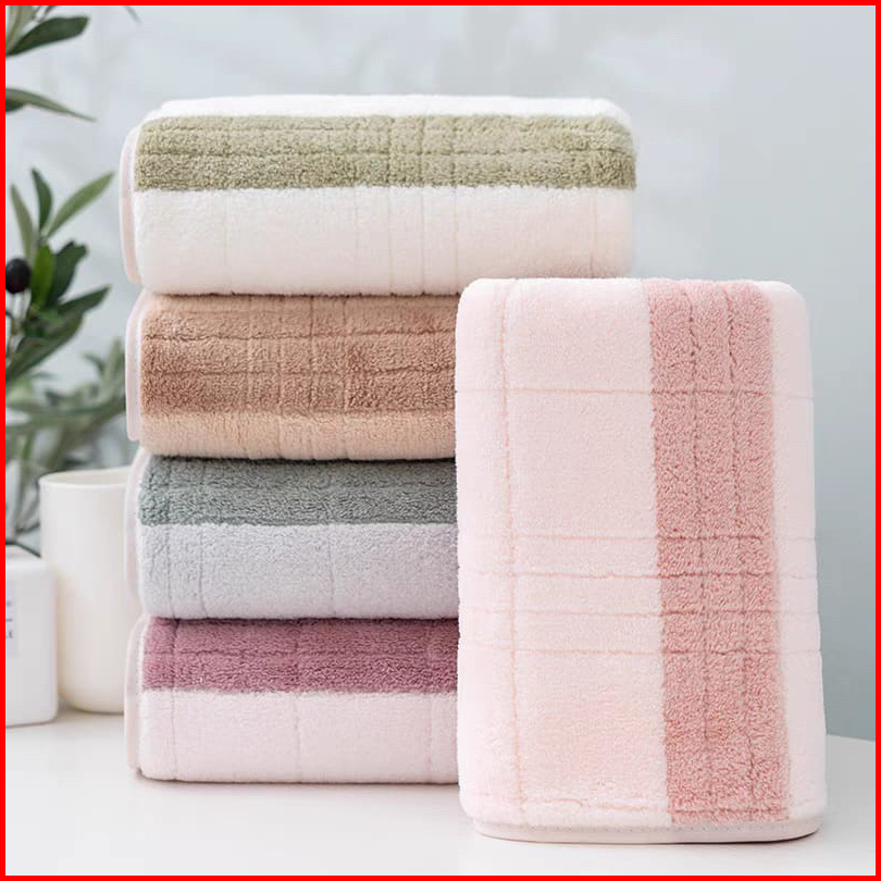 Handuk Mandi Dewasa Quick Dry Microfiber Bulu Salur Kotak 70x140 Lembut Serap Air Premium