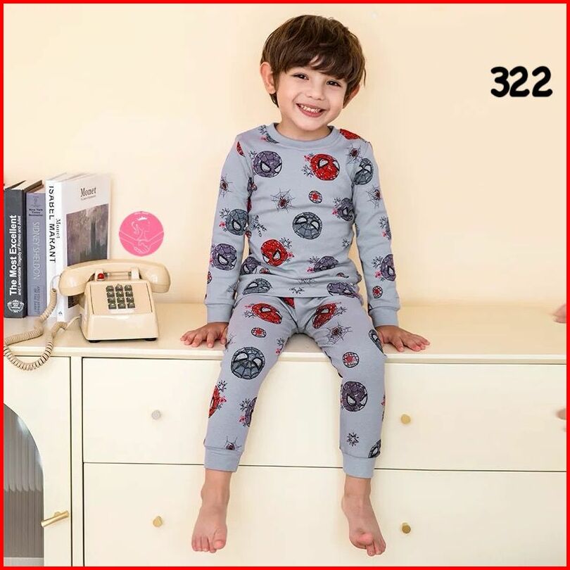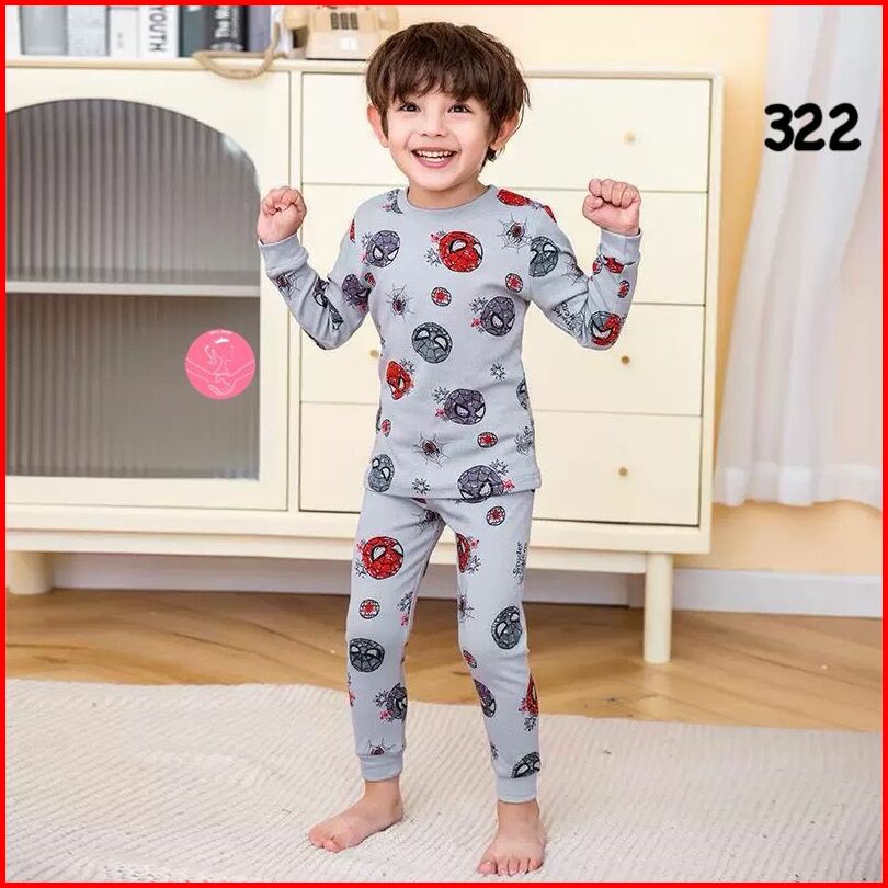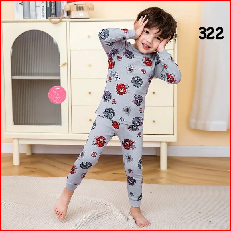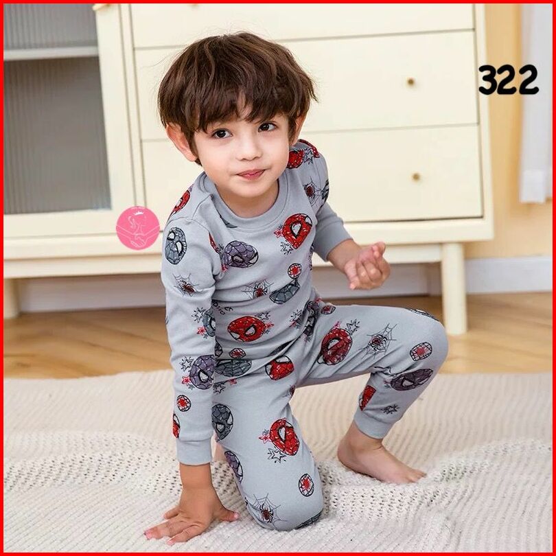 Dealshop Baju Tidur Anak Untuk 1-10 Tahun Setelan Anak Laki Laki Stelan Anak Cowok Set Piyama Motif Spiderman Abu 322