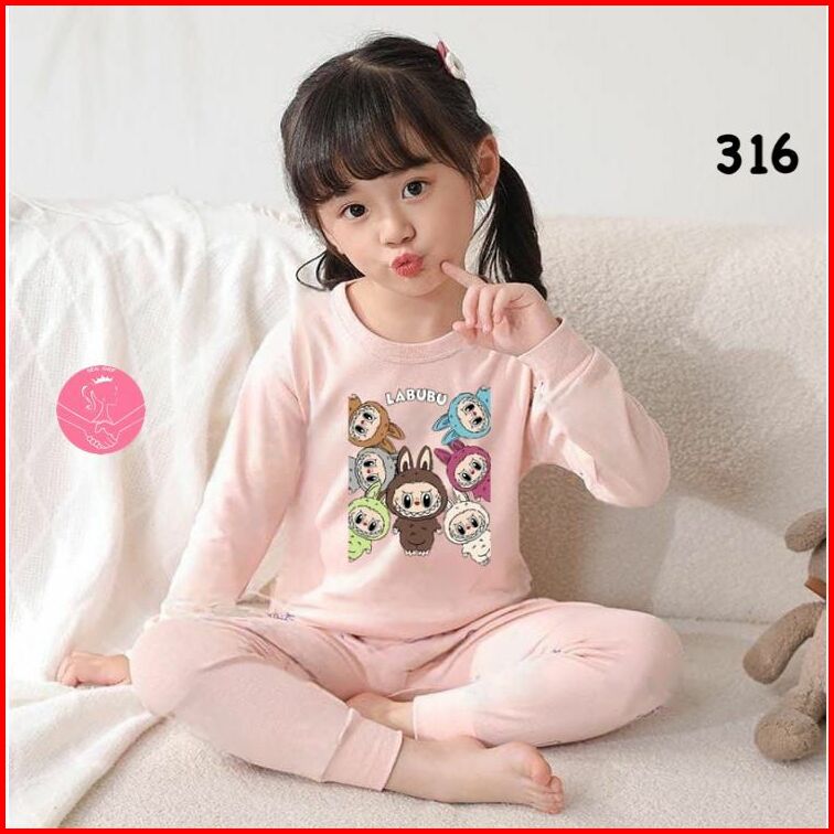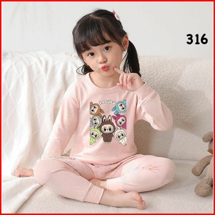 Dealshop Baju Tidur Anak Untuk 1-10 Tahun Bahan Kaos Setelan Anak Perempuan Stelan Anak Cewek Set Piyama Anak 316