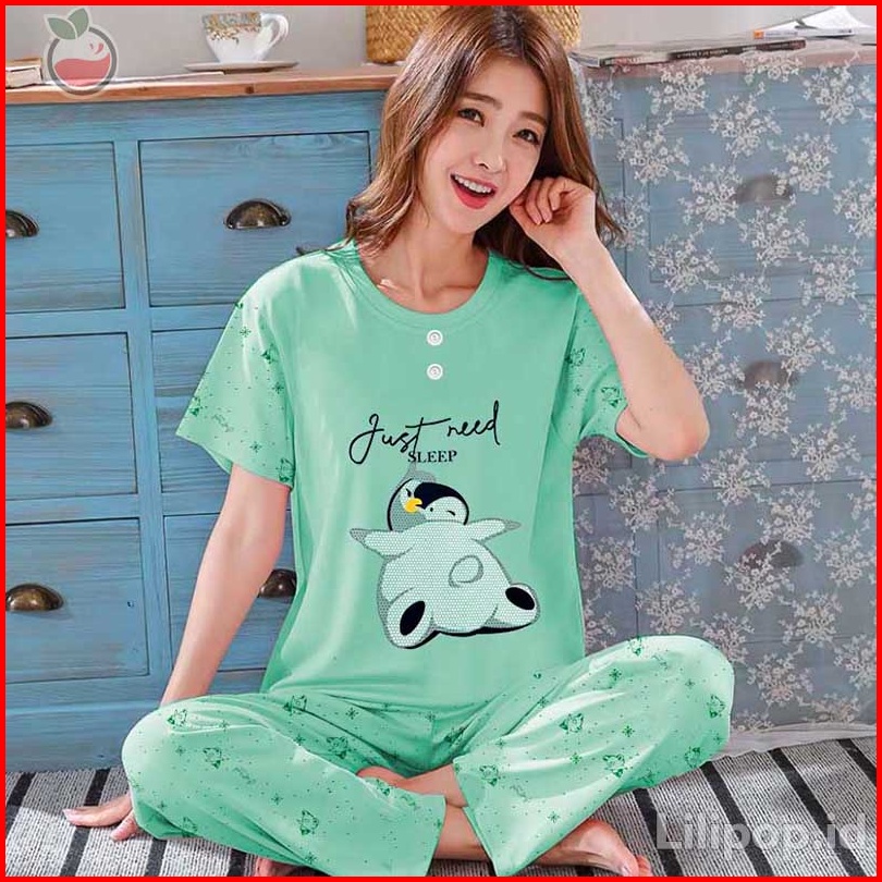 Lilipop.id Baju Tidur Wanita Cp Need Sleep Setelan Piyama Babydoll Kaos Celana Panjang
