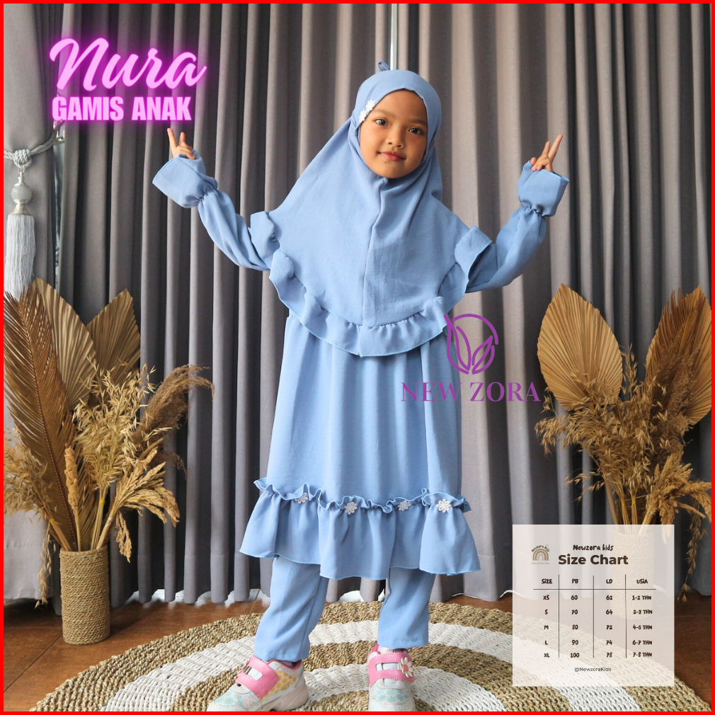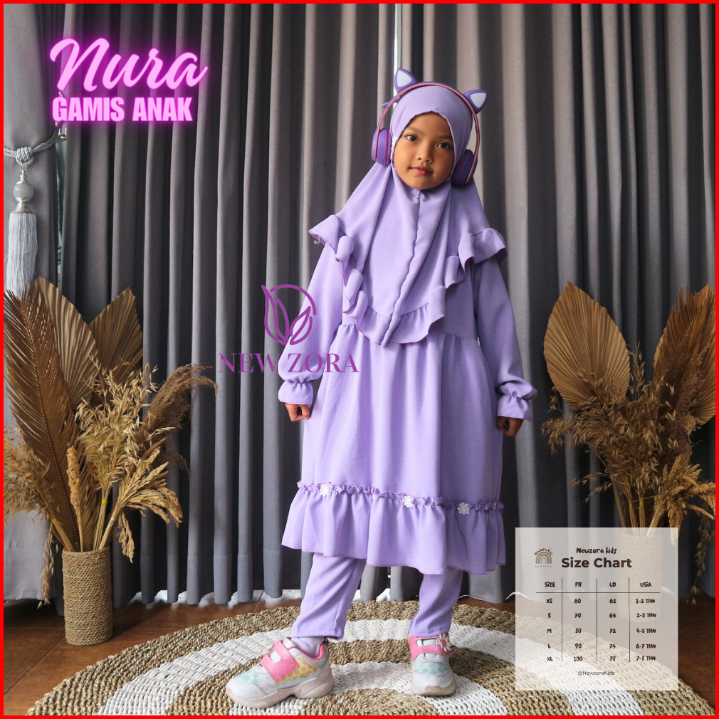 Terbaru Gamis Anak Nura One Set Anak Muslimah Usia 1-8tahun