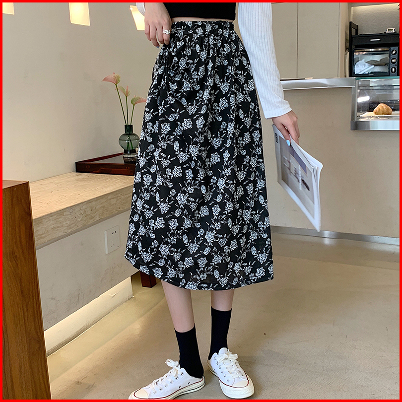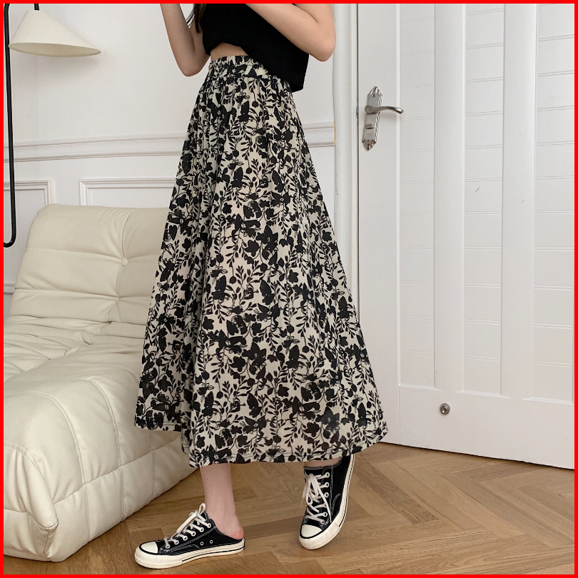 Yikoo-rok Panjang 5 Warna Floral Long Skirt Korea Wanita Maxi Rok