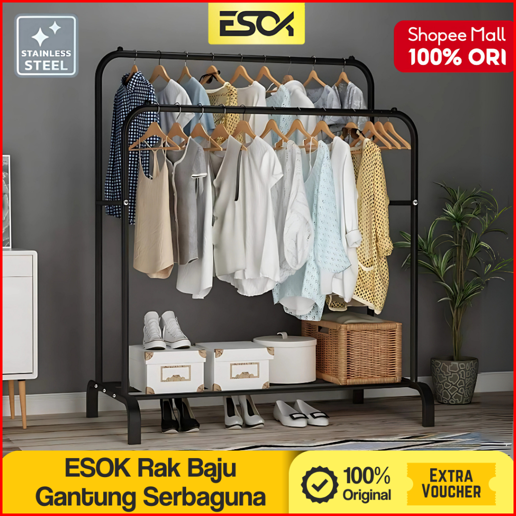 Esok Rak Baju Gantung Serbaguna Stand Hanger Rak Pakaian Minimalis Rak Baju Estetik