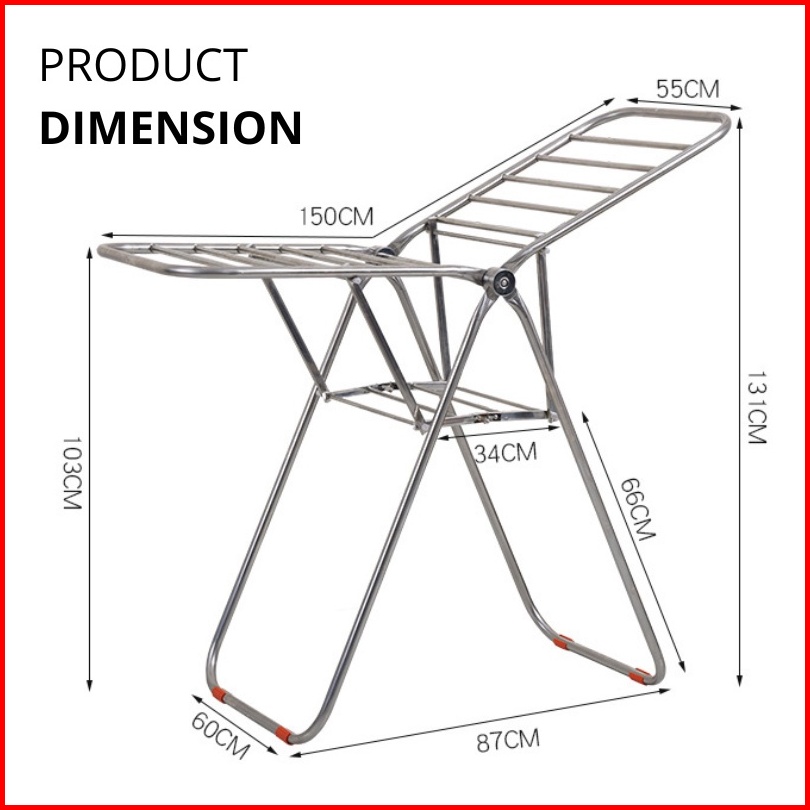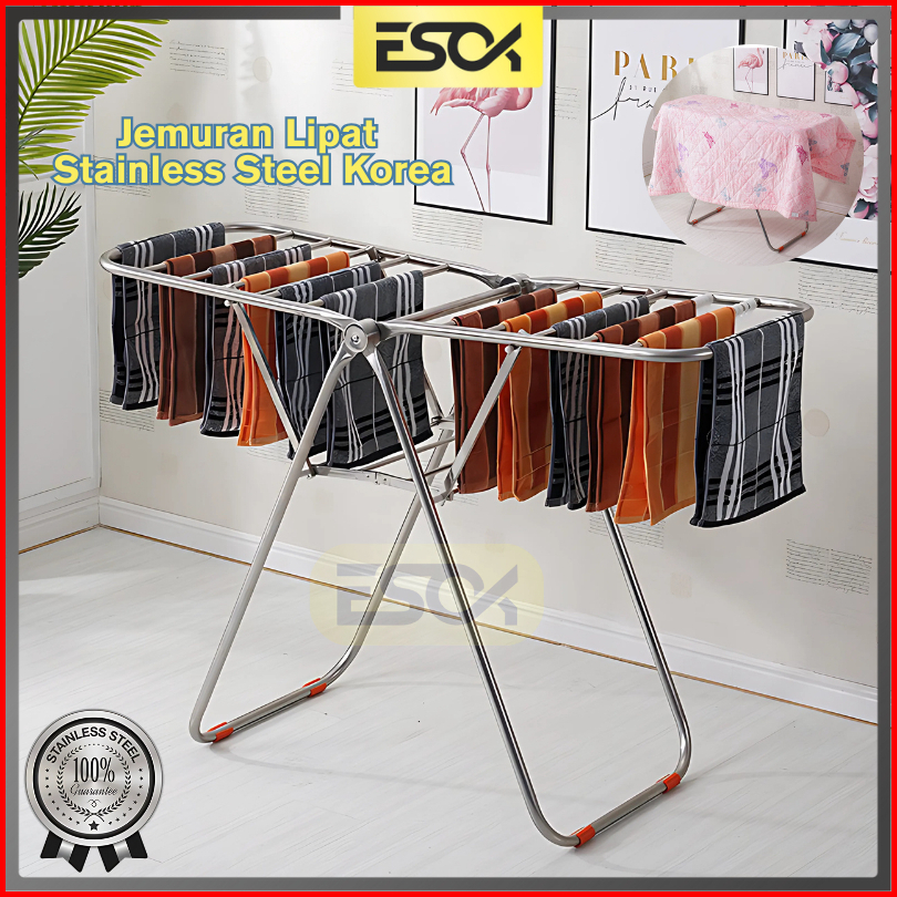 Esok Jemuran Lipat Stainless Steel Korea Folding Dryer Rack Indoor Outdoor Clothes Hanger Foldable