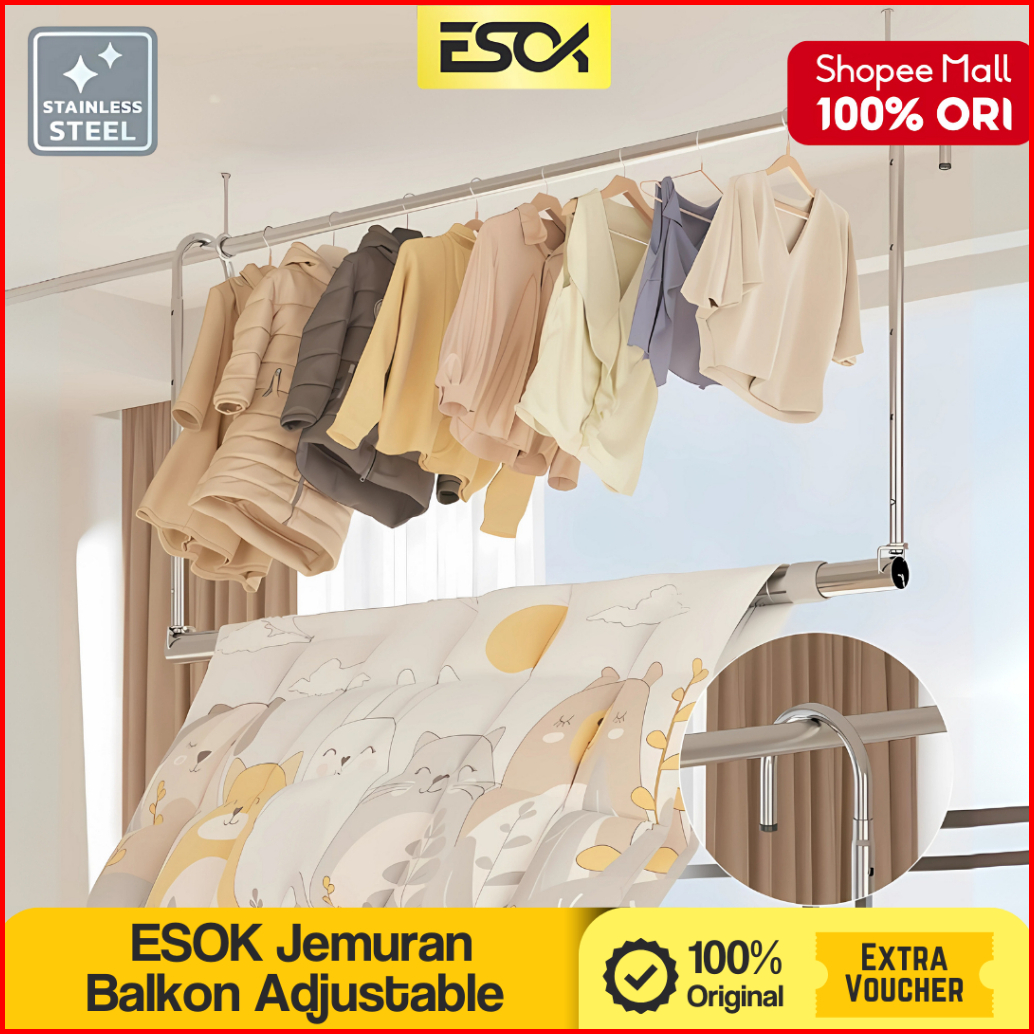 Esok Jemuran Balkon Adjustable Panjang Stainless Steel Tahan Karat