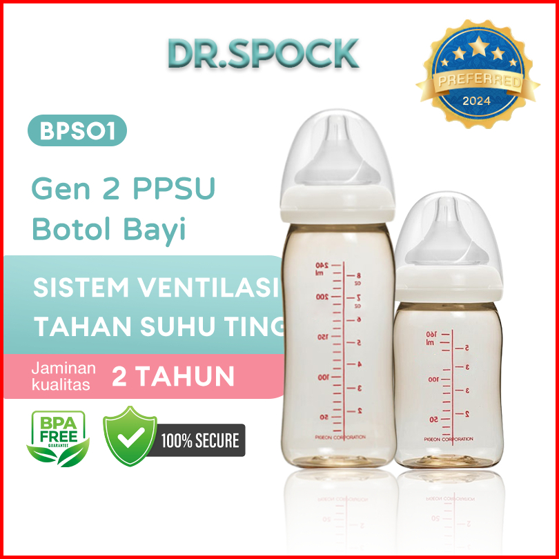 Dr.spock Gen 2 160ml 240ml Botol Susu Ppsu Wide Neck Ppsu Botol Susu Bayi 0 6 Bulan Bps01