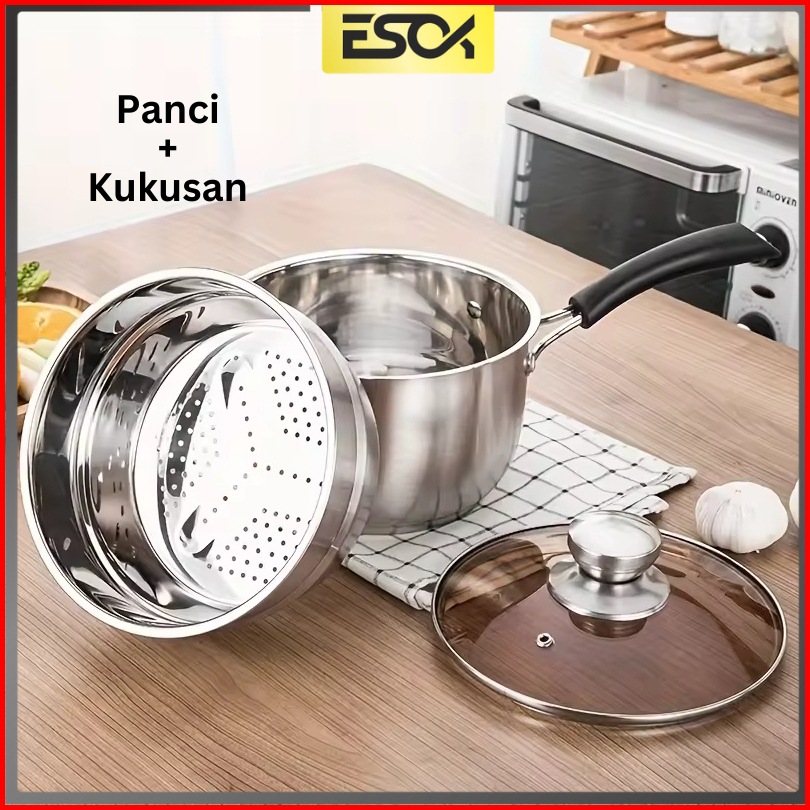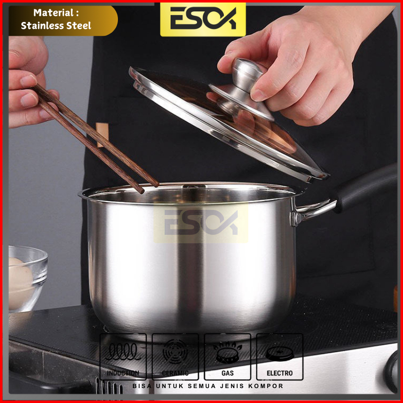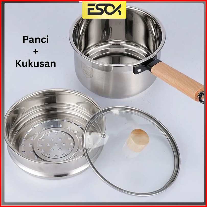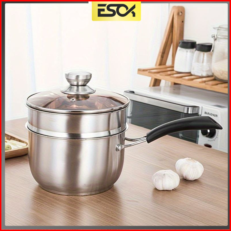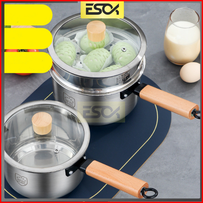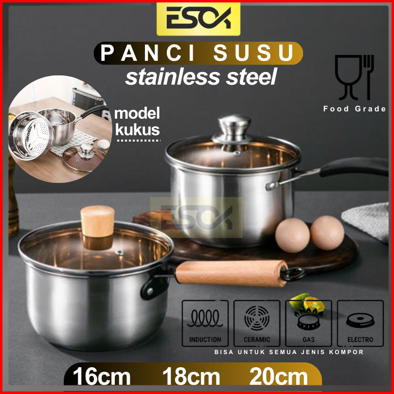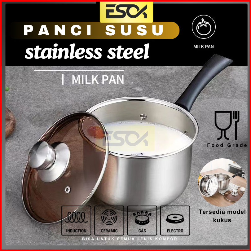 Esok Panci Susu Stainless Milk Pot Kukus Tebal Tutup Kaca