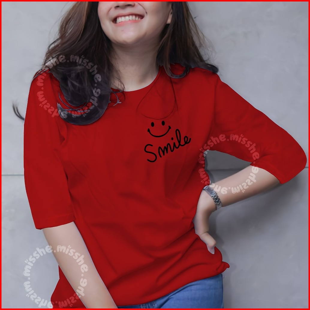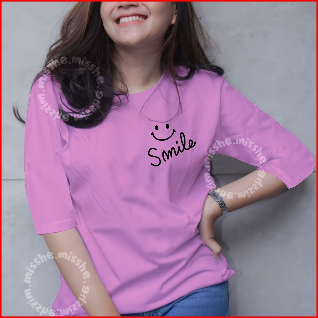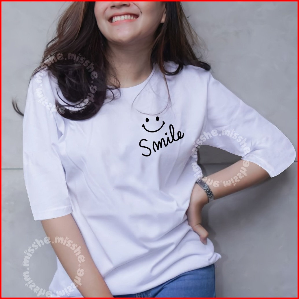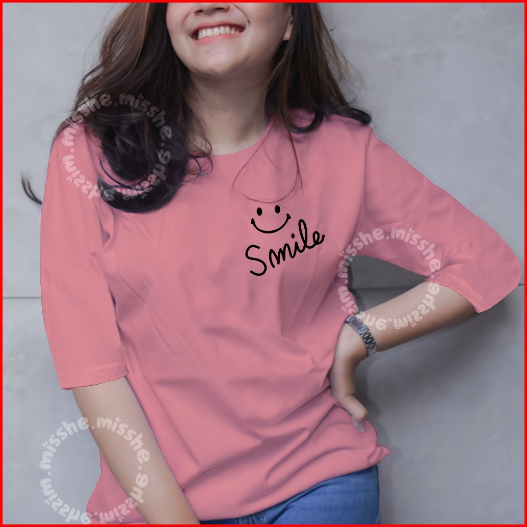 Id - Tshirt Raglan 3 4 Motif Dtf Smile Kantong Kaos Katun Wanita Baju Kaos Wanita Terbaru 2024 Kaos Polos Wanita Kaos Ko