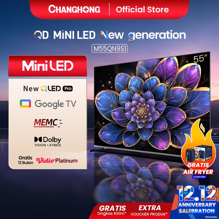 Changhong QD Mini LED TV 4K 55 inch QLED PRO Digital TV Dolby Audio DBX-TV (M55QN9S1)