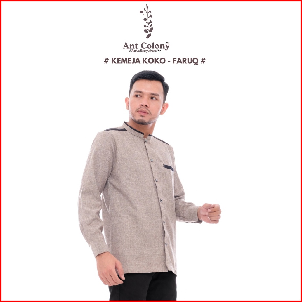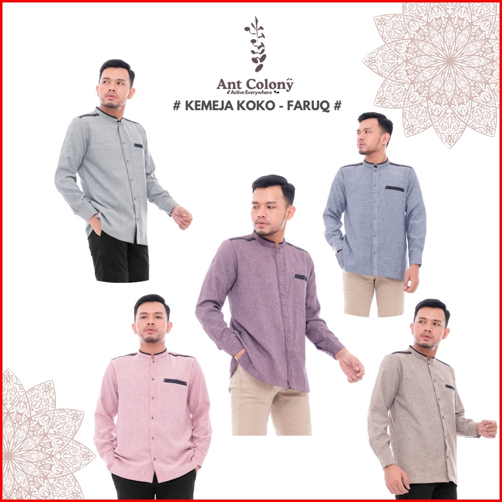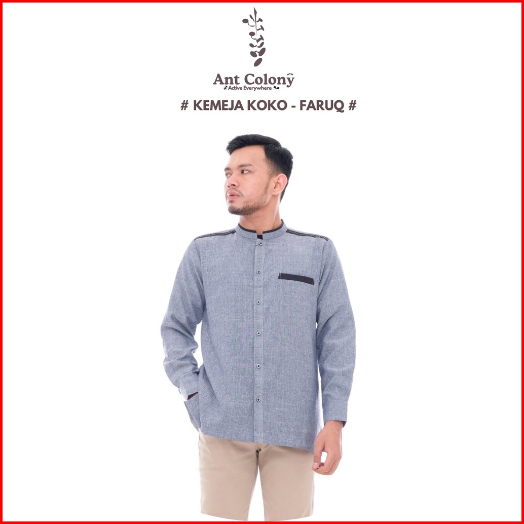 Ant Colony Kemko Lengan Panjang Kemeja Koko Baju Koko Fashion Muslim Dewasa Faruq