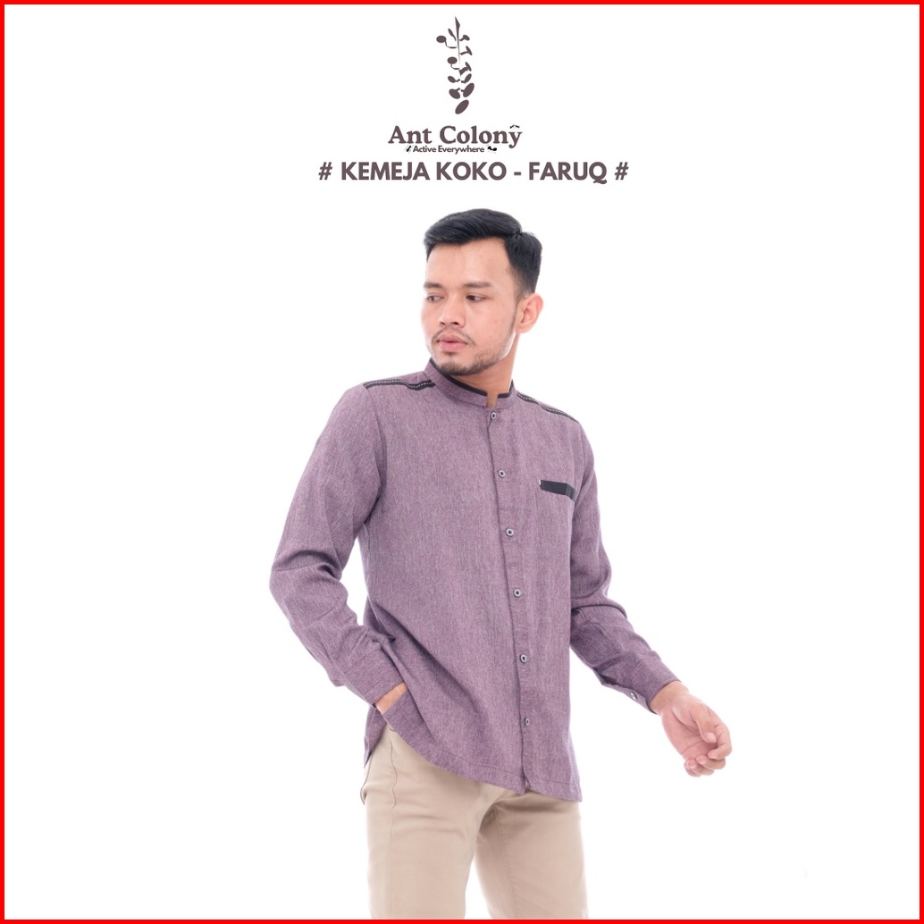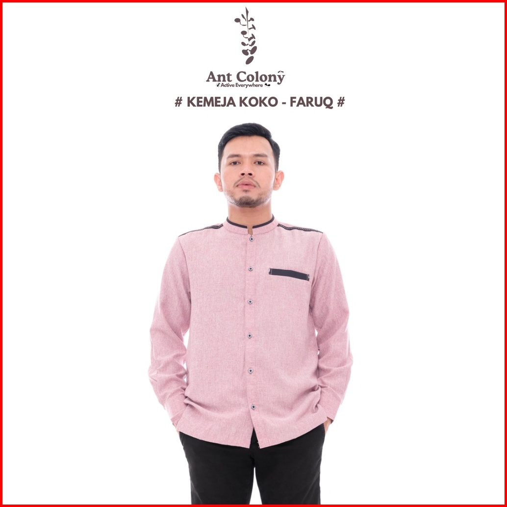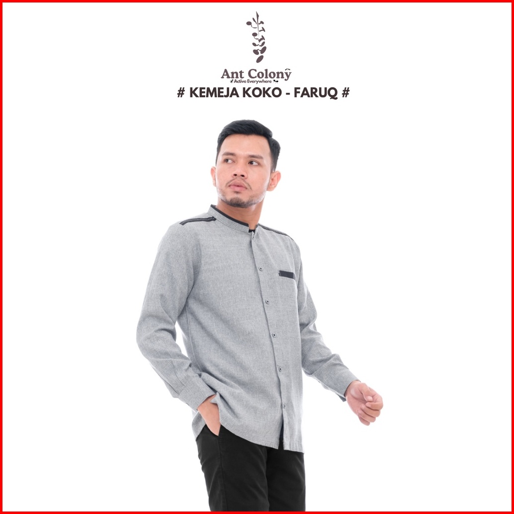 Ant Colony Kemko Lengan Panjang Kemeja Koko Baju Koko Fashion Muslim Dewasa Faruq