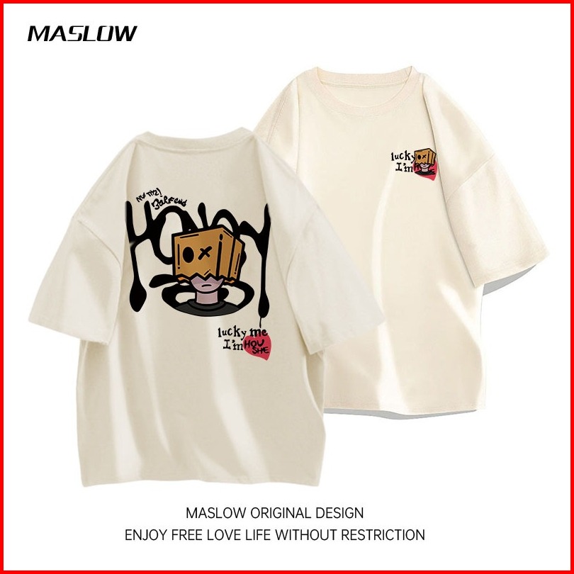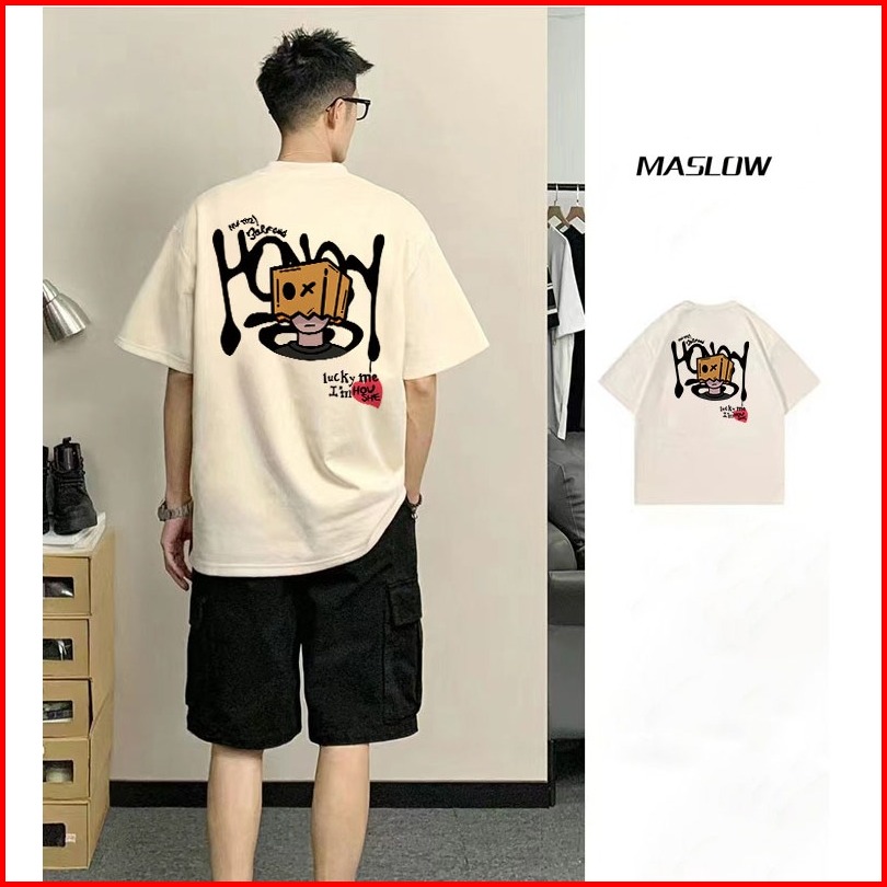 Maslow T Shirt Baju Pria Oversize Lengan Pendek Combed Box Huruf Lucky Fashion Pria Kaos T Shirt Pria Cream 100 Cotton
