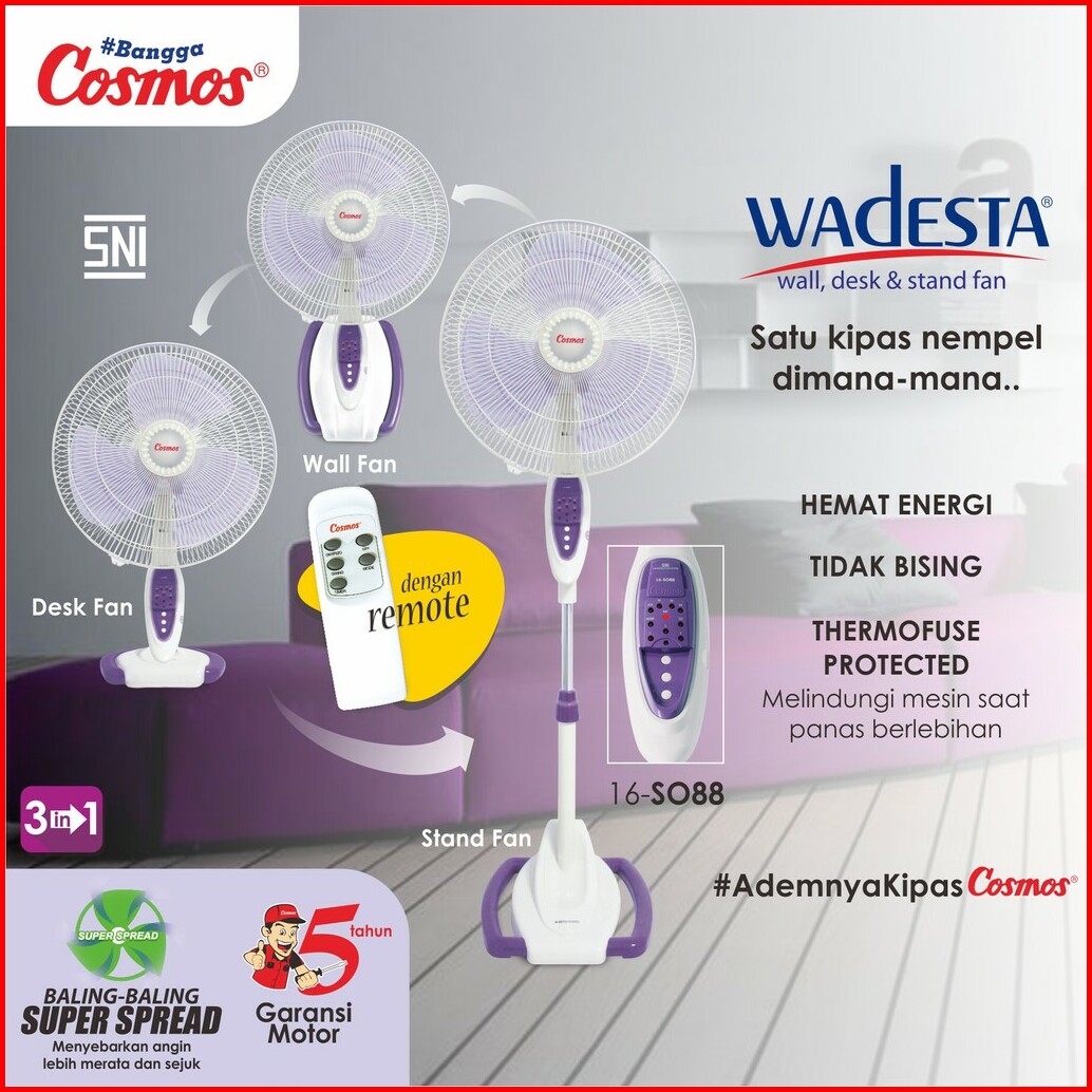 Cosmos Kipas Angin Wadesta Wall Desk Stand 3in1 - Remote - 16-s088