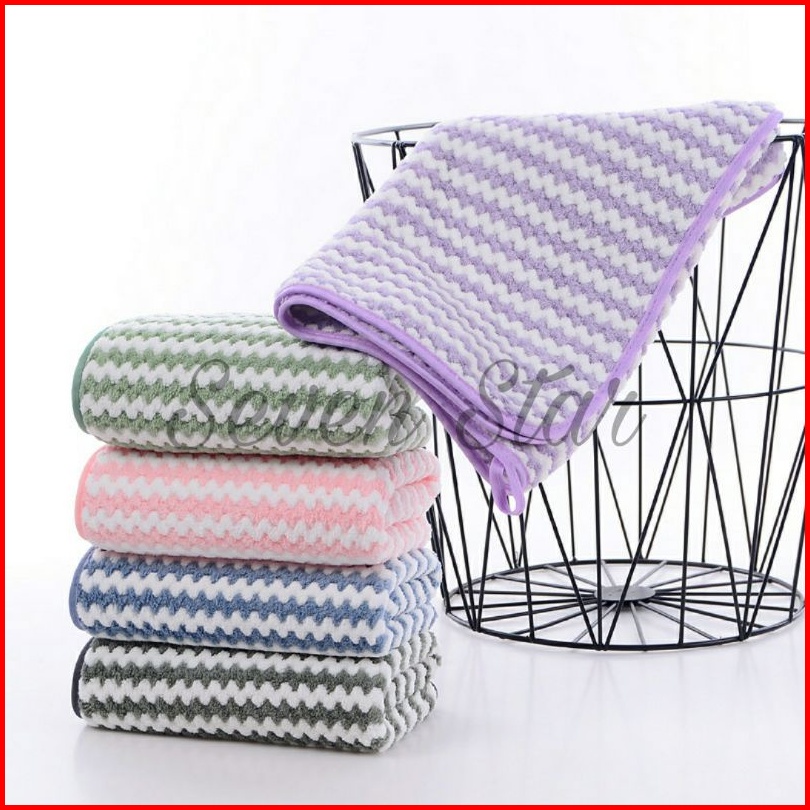 Handuk Mandi Dewasa Quick Dry Microfiber Bulu Zig Zag Emboss 70x140 Lembut Super Serap Berkualitas