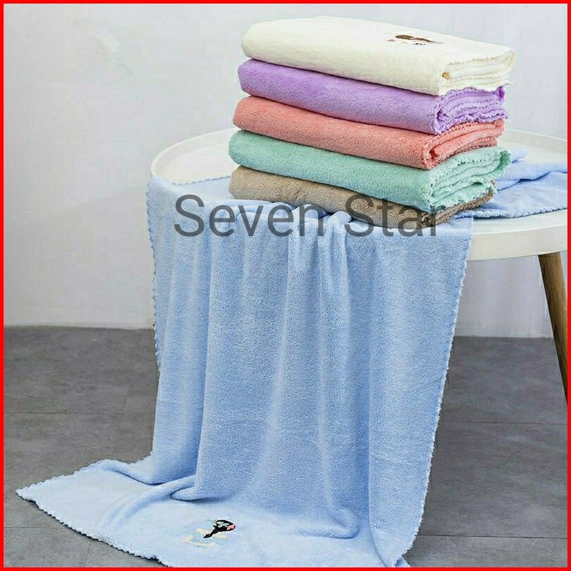 Handuk Mandi Dewasa Micro Bulu Gambar Lembut Berkualitas Ukuran 70x140 Premium